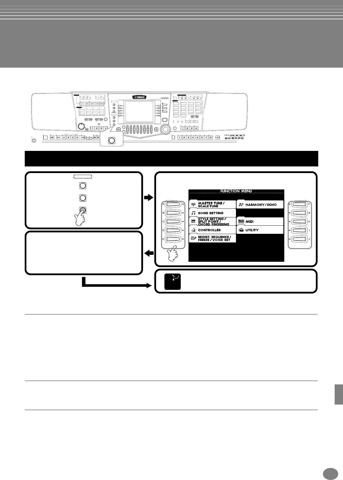 - Realización de ajustes globales y otros ajustes importantes: Function (función)