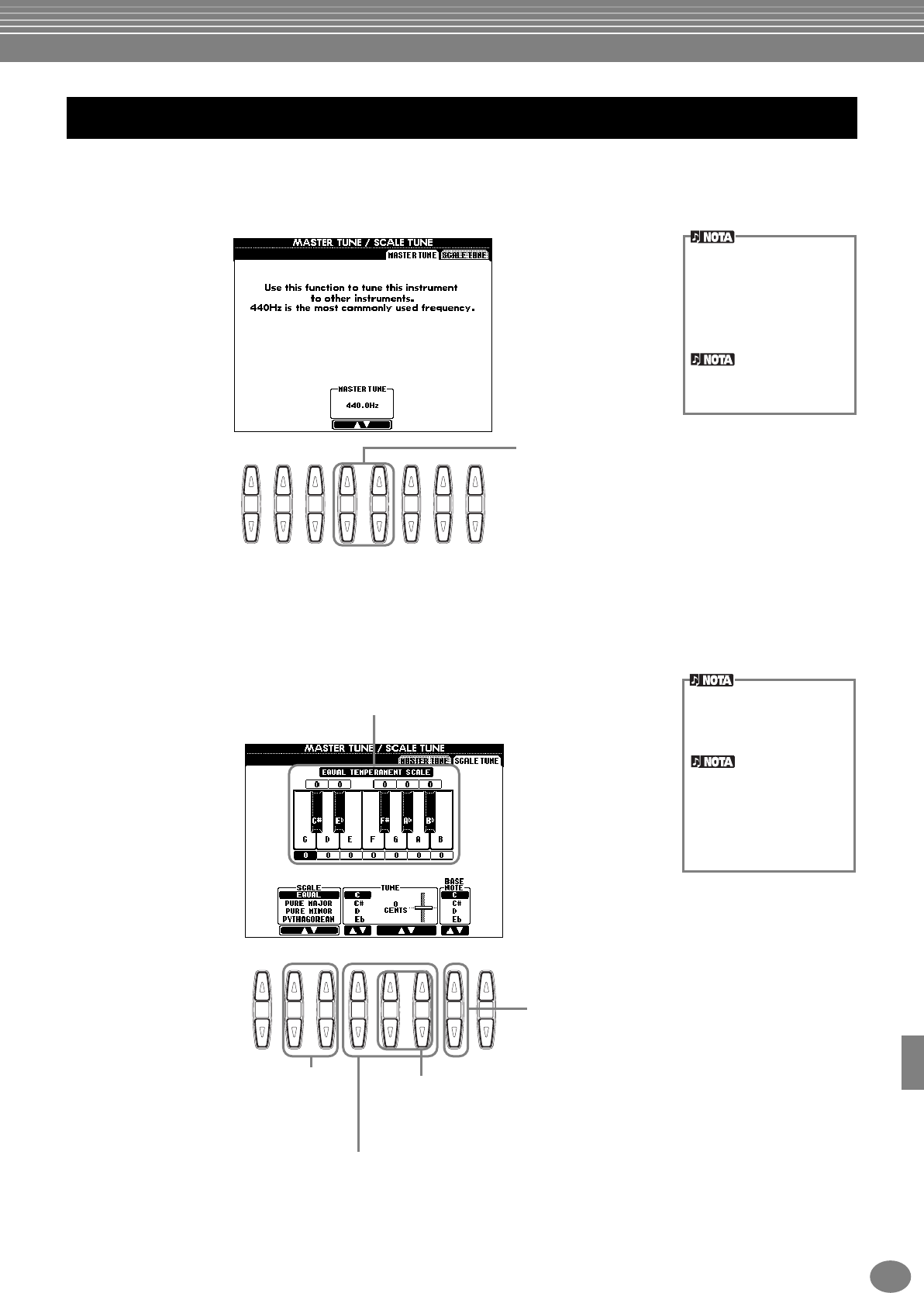- Ajuste del tono y de la afinación: Master Tune y Scale Tune (afinación principal y afinación de e...