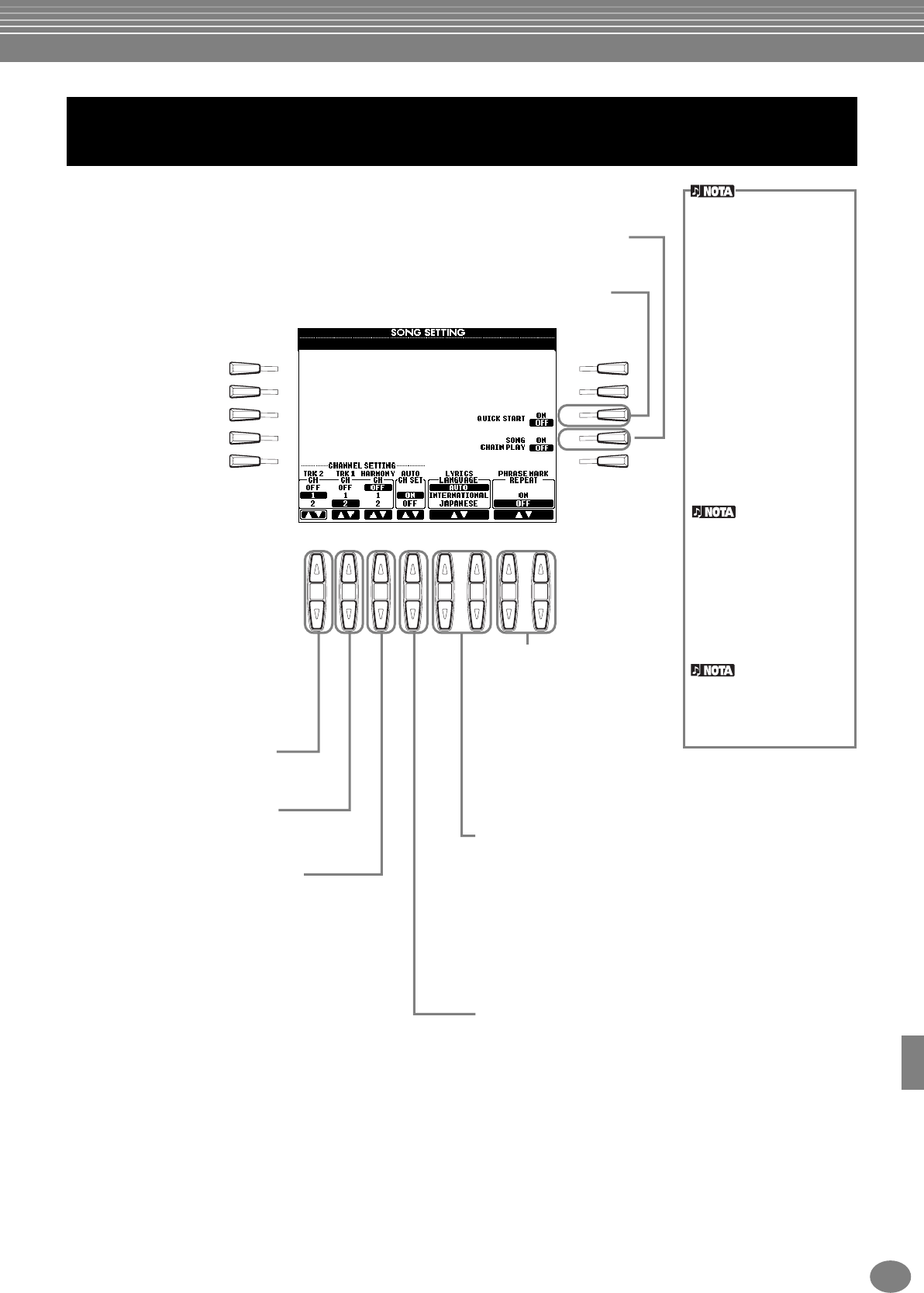 - Ajuste de parámetros relacionados con canciones: Song Settings (ajustes de canciones)
