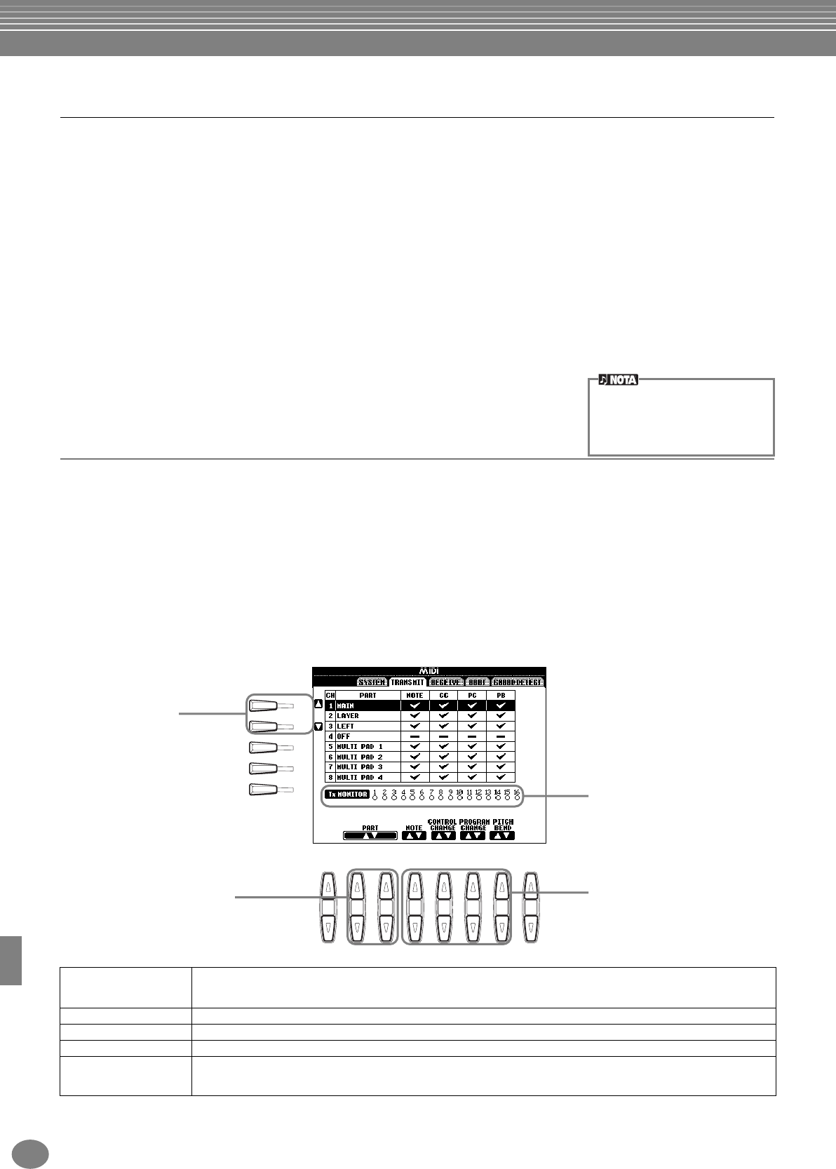 - Transmisión de datos MIDI: Transmit (transmitir)
