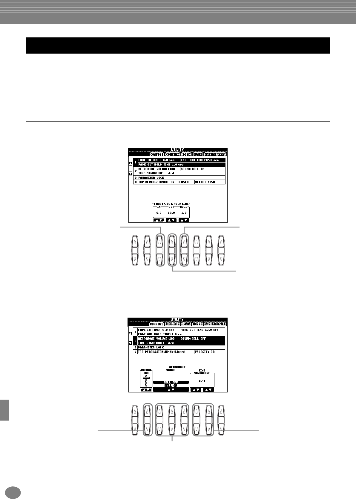 - Ajustes para Fade In/Out, Metronome, Parameter Lock y Tap: CONFIG 1
