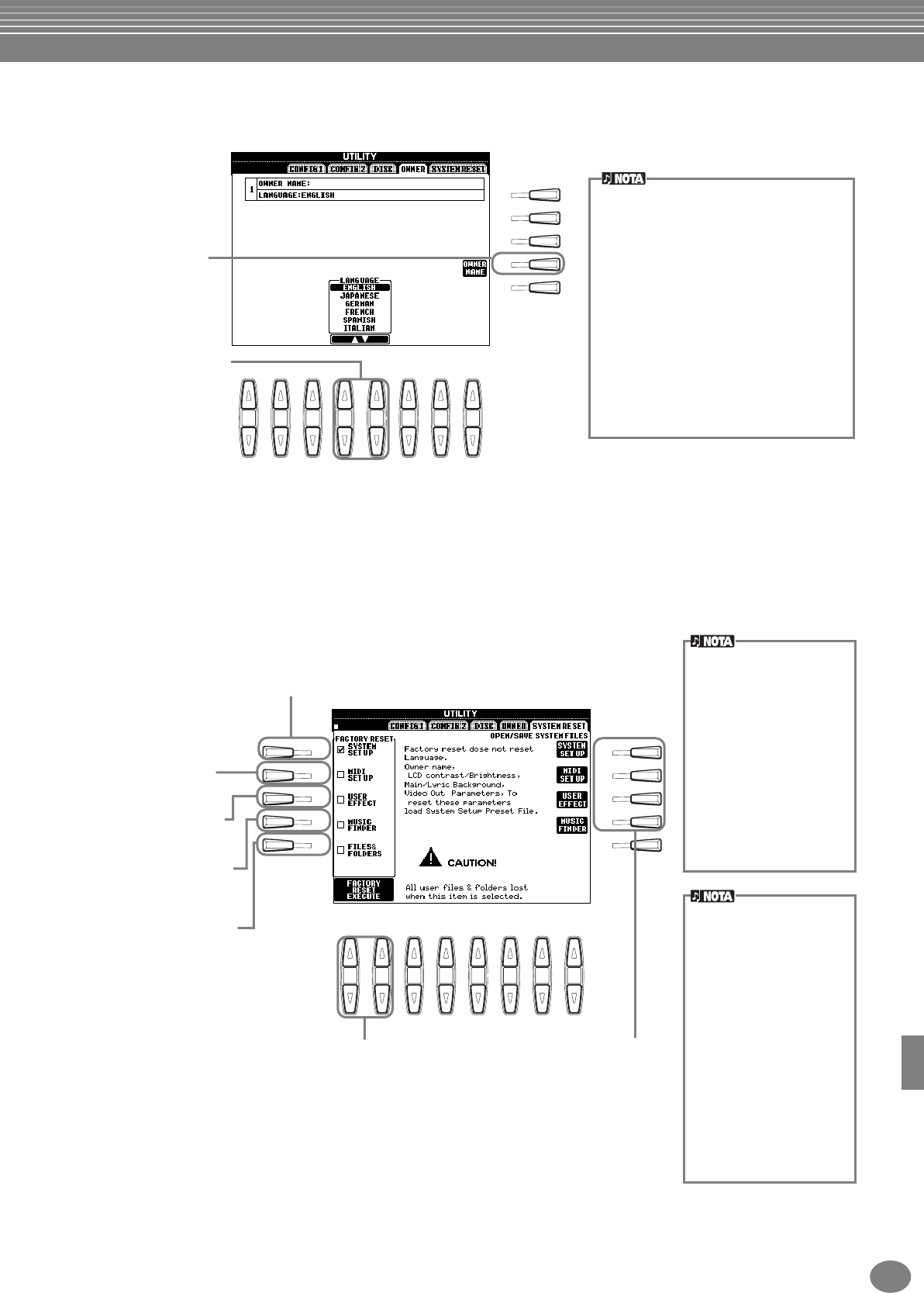 - Restablecimiento de los ajustes programados de fábrica del PSR- 2000/1000: System Reset (reposici...
