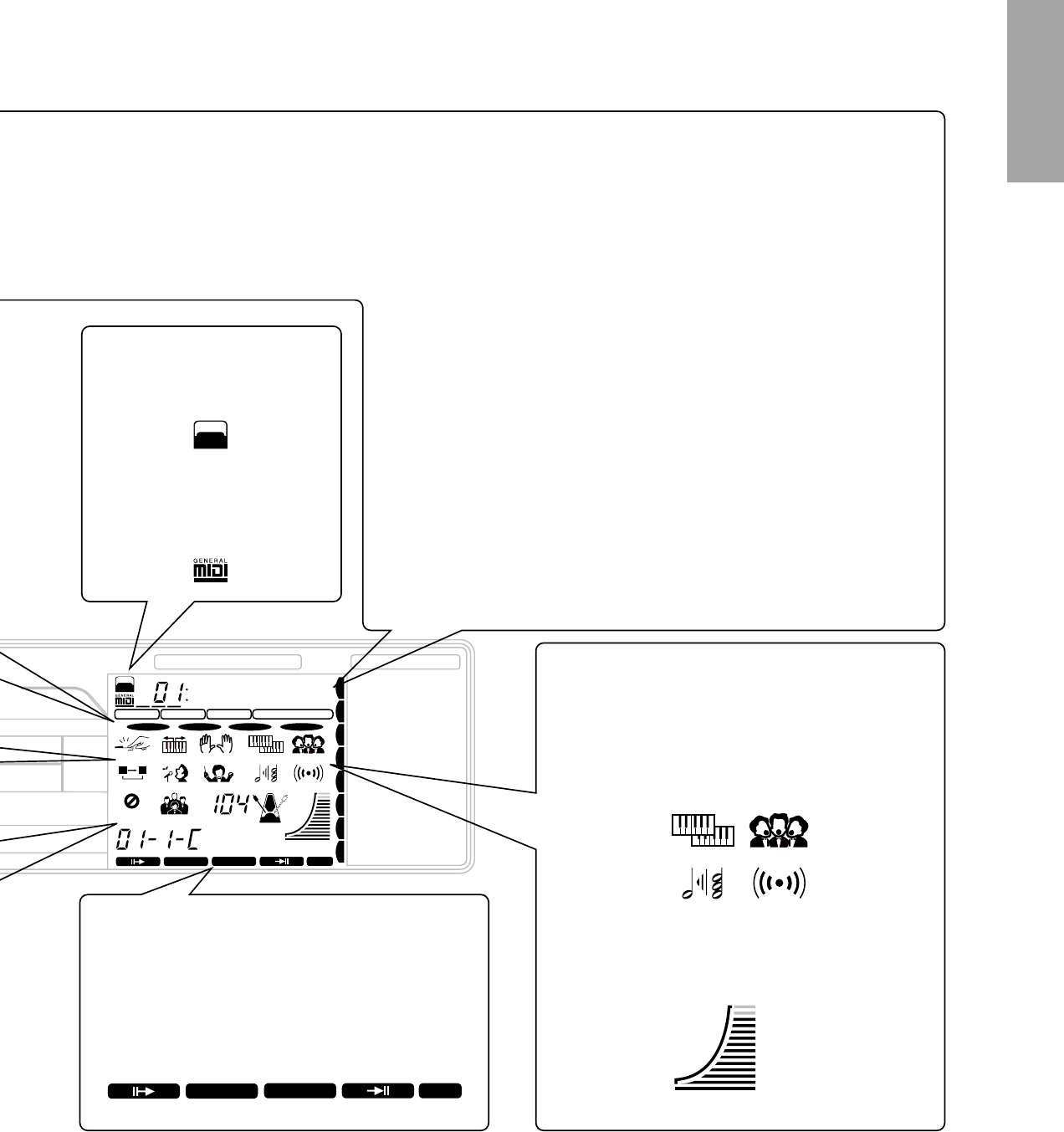 (MEASURE +/-, BEAT +/-), VOICE, STYLE, SONG,