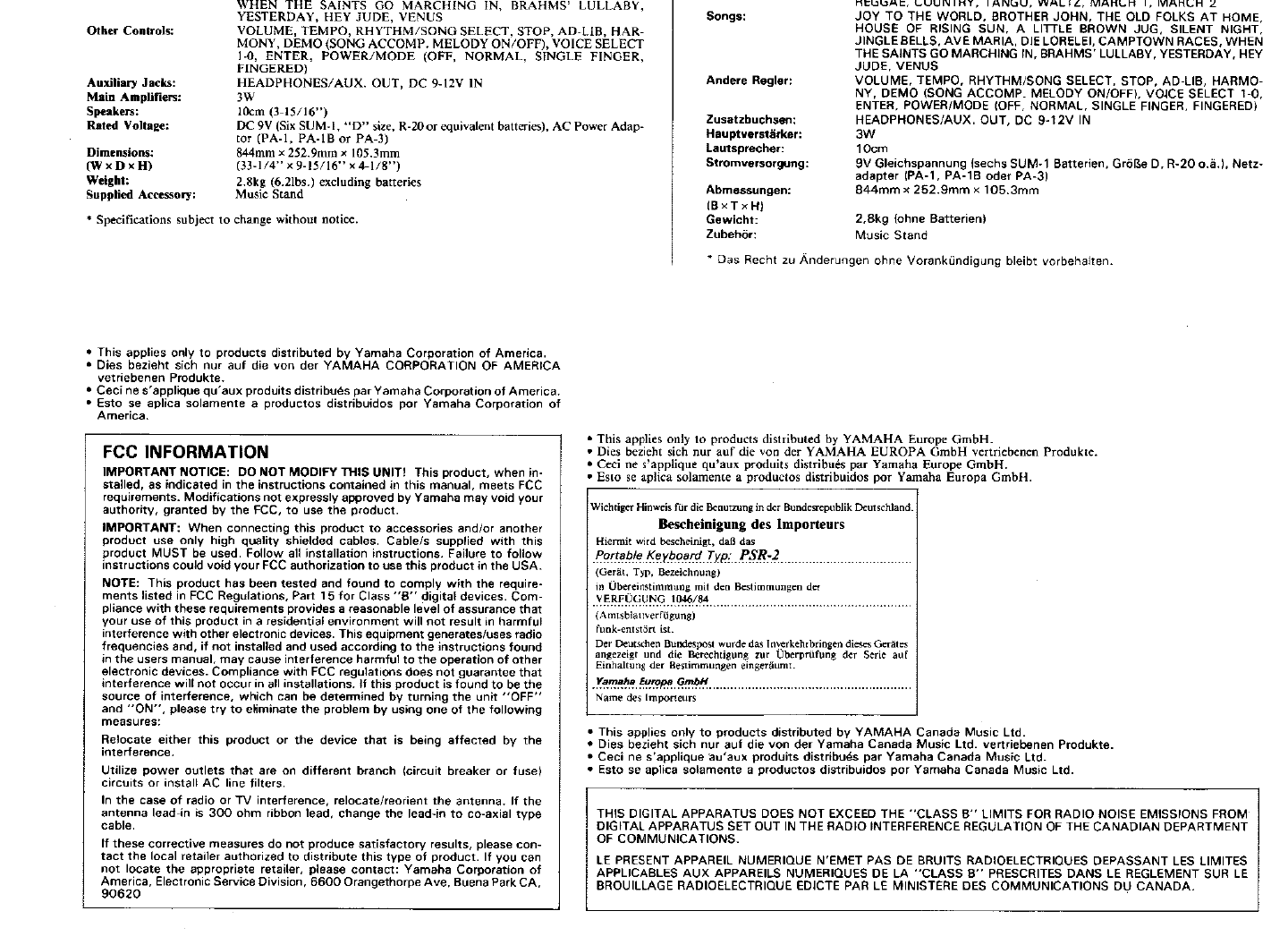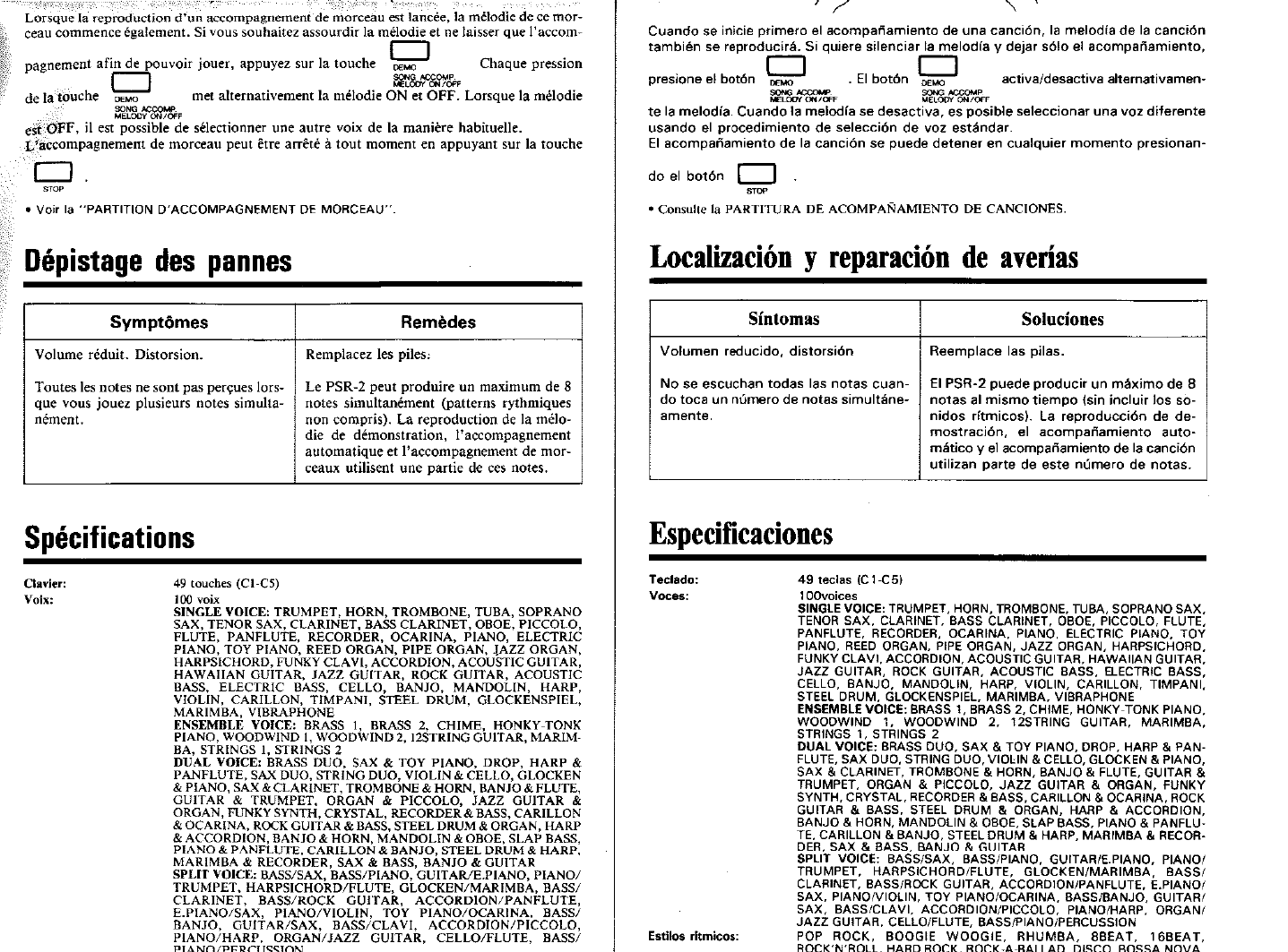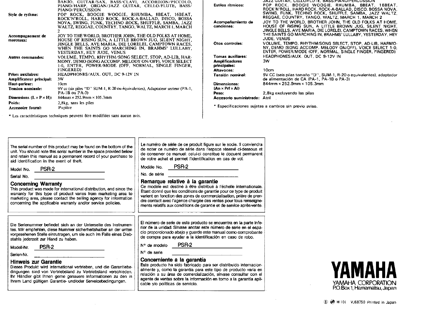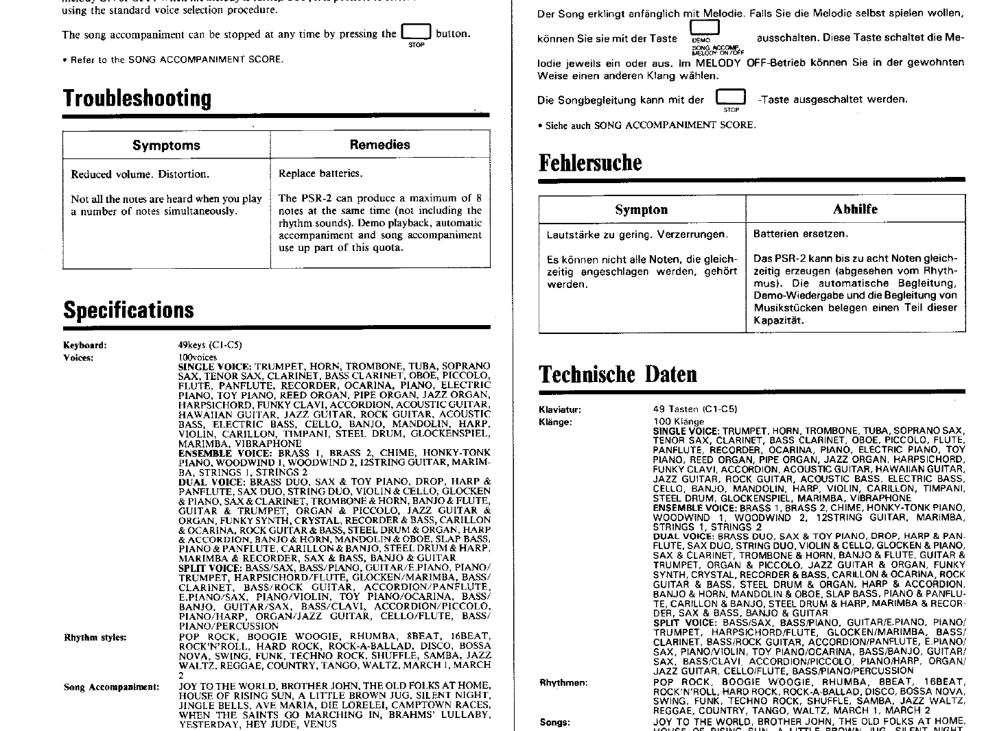 Yamaha PSR 2 Owner's Manual (Image) PSR2G