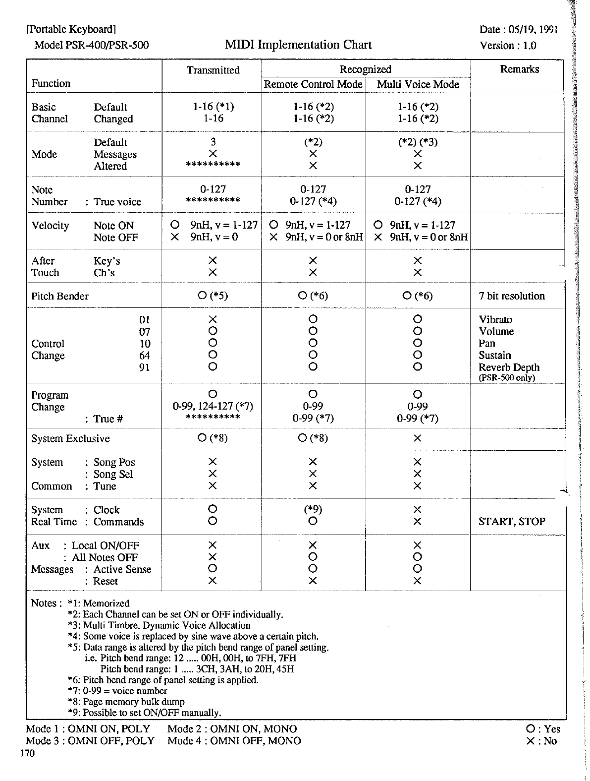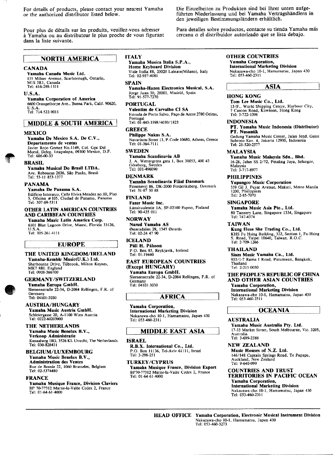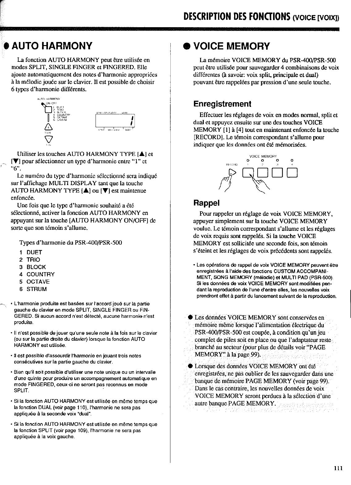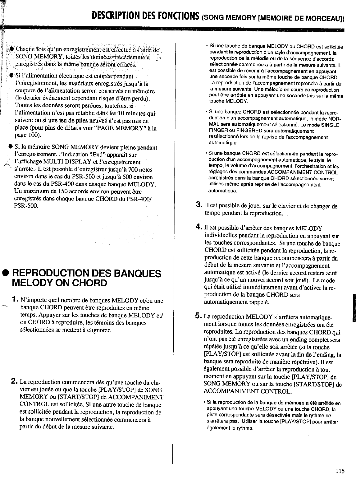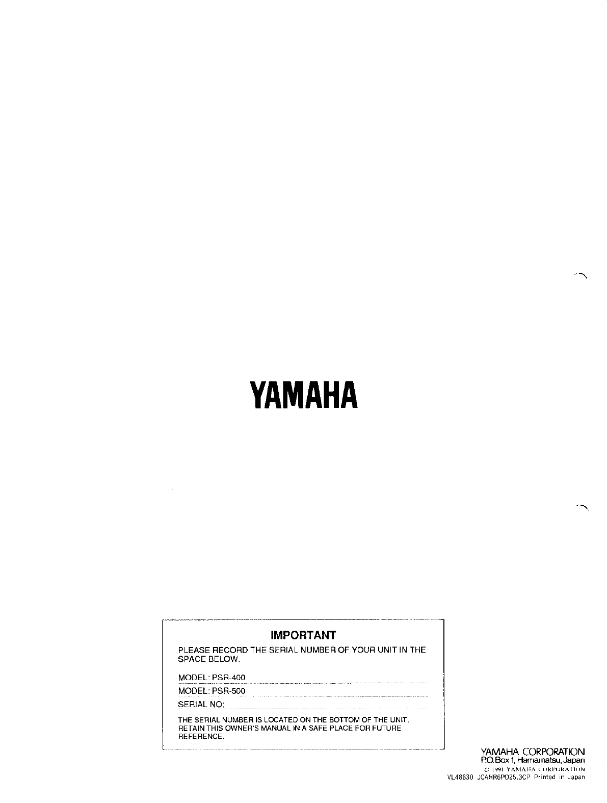 User Manual: Yamaha PSR-500/PSR-400 Owner's Manual (Image)
