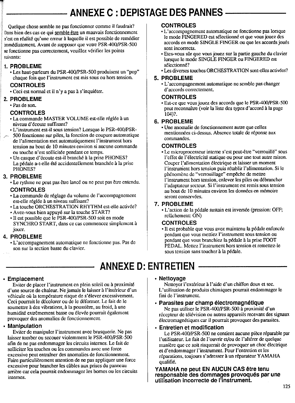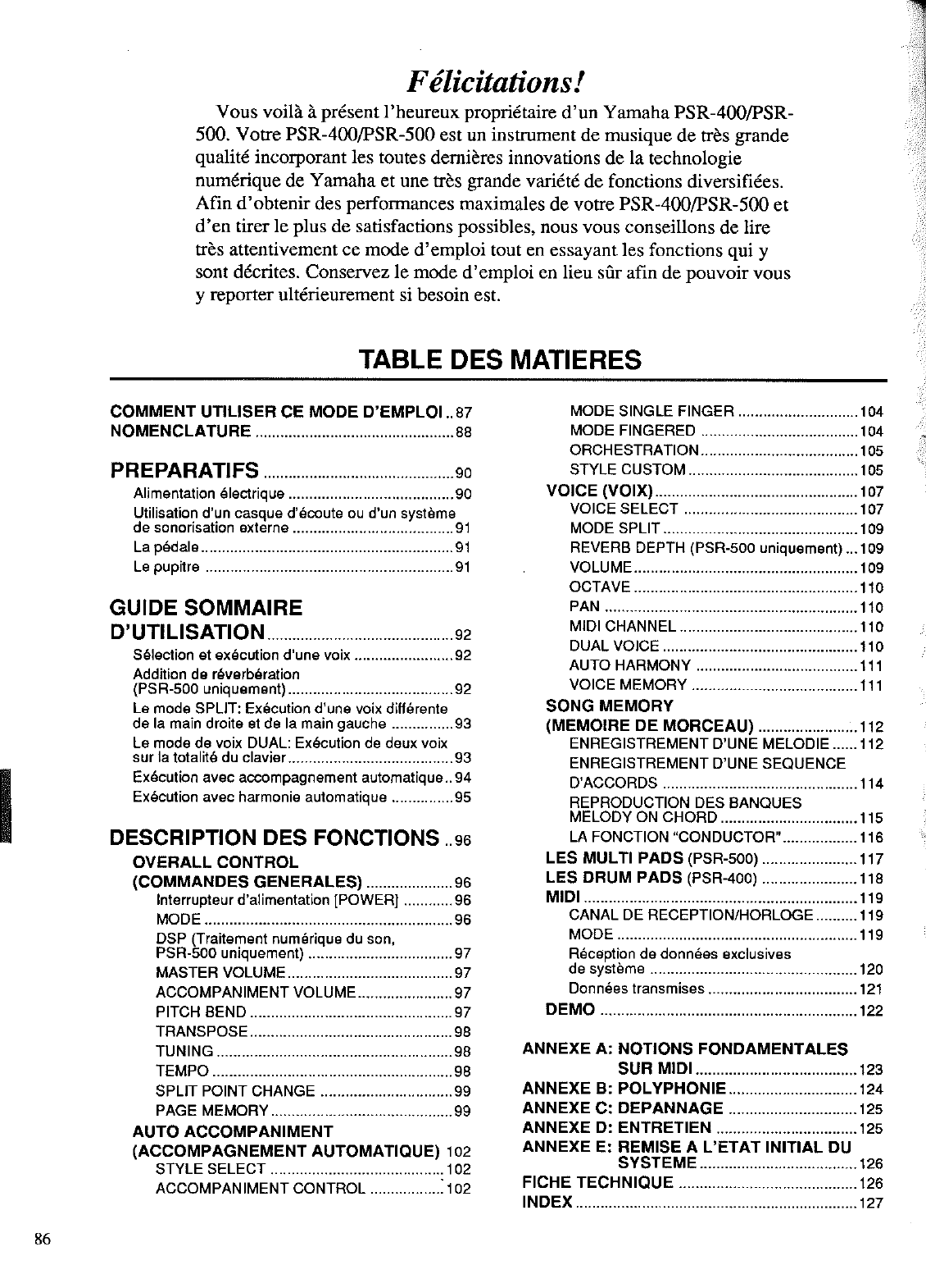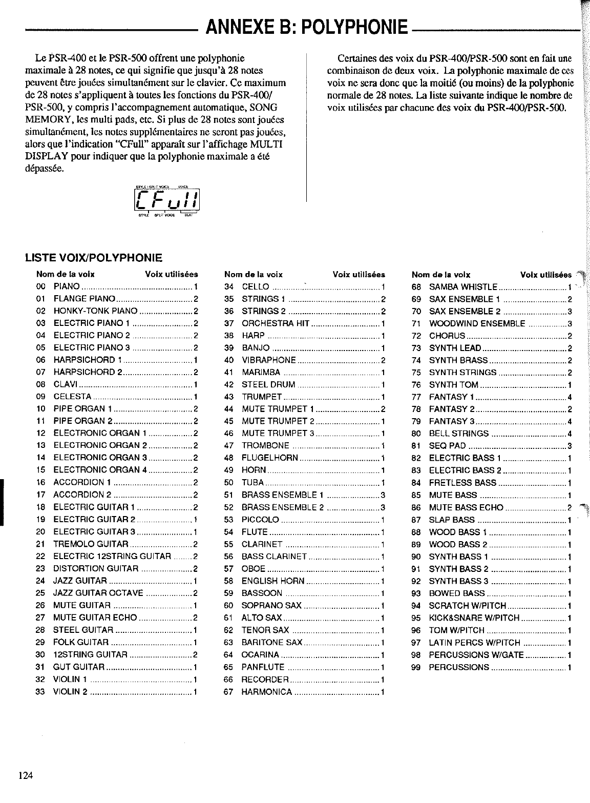 Yamaha PSR 500/PSR 400 Owner's Manual (Image) PSR500F