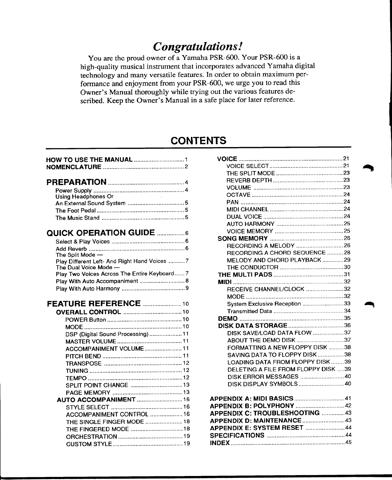 User Manual: Yamaha PSR-600 Owner's Manual (Image)