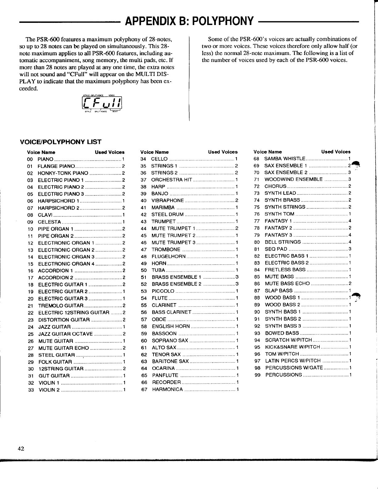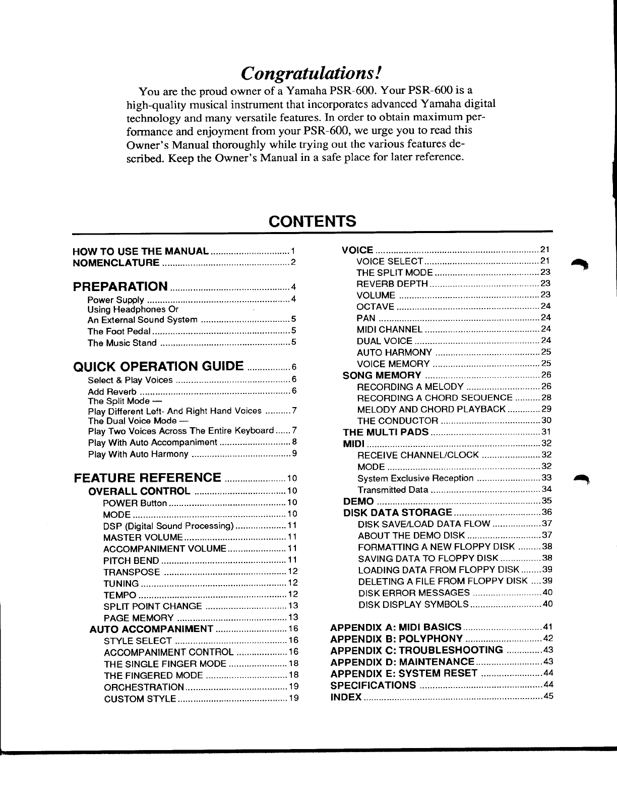 User Manual: Yamaha PSR-600 Owner's Manual (Image)