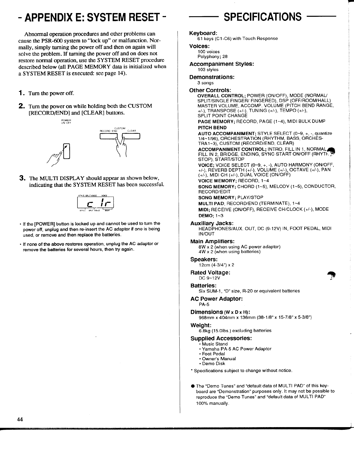 Yamaha PSR600E PSR 600 Owner's Manual (Image)