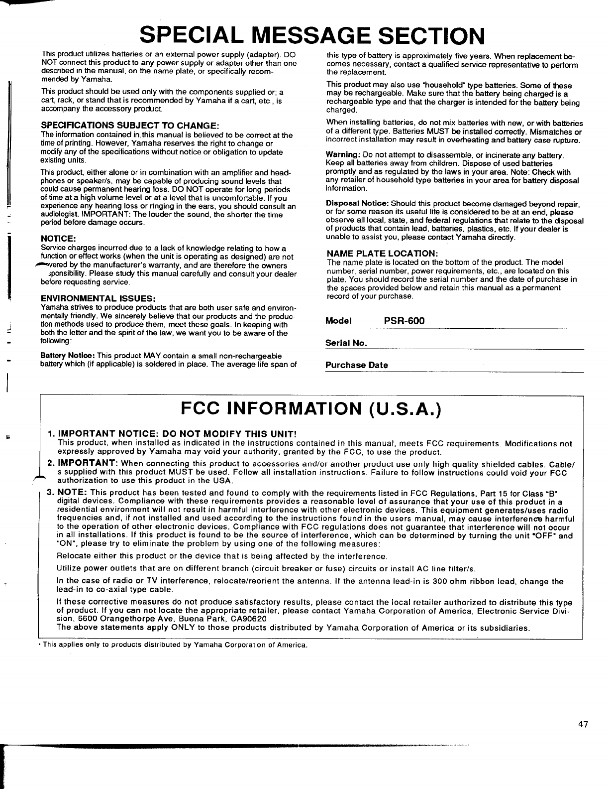 Yamaha Corporation PSR-600 Owner's Manual psr600e Yamaha Corporation - PSR-600 - Owner's Manual