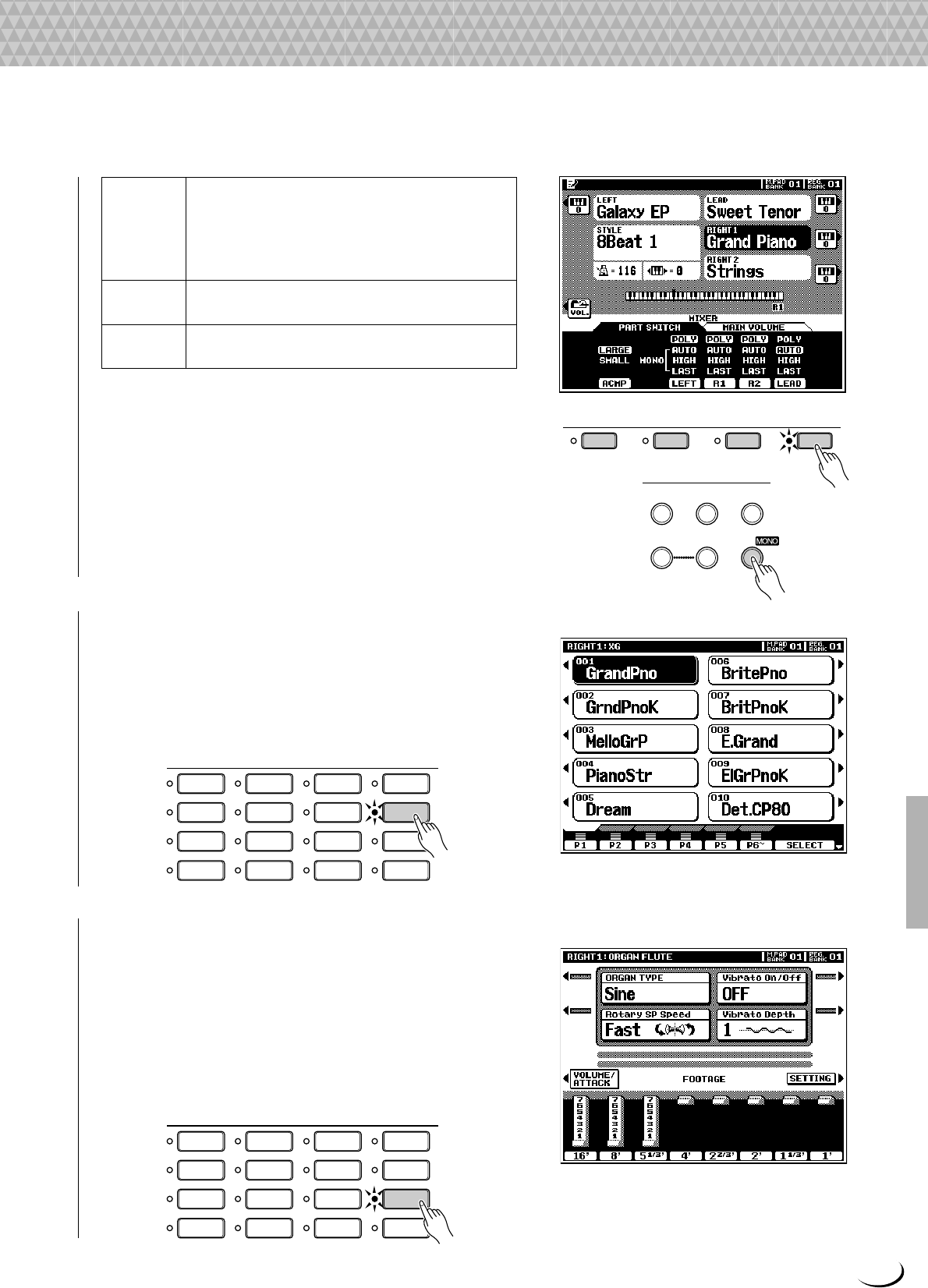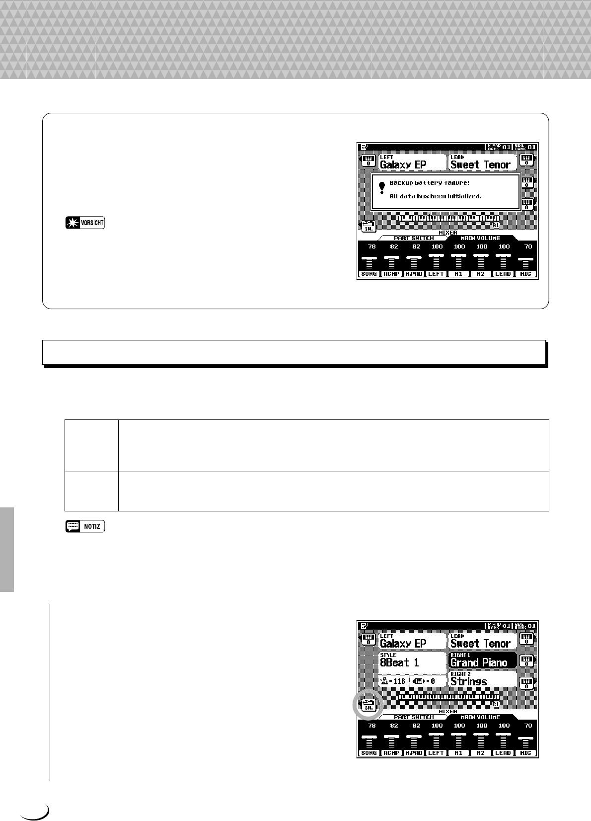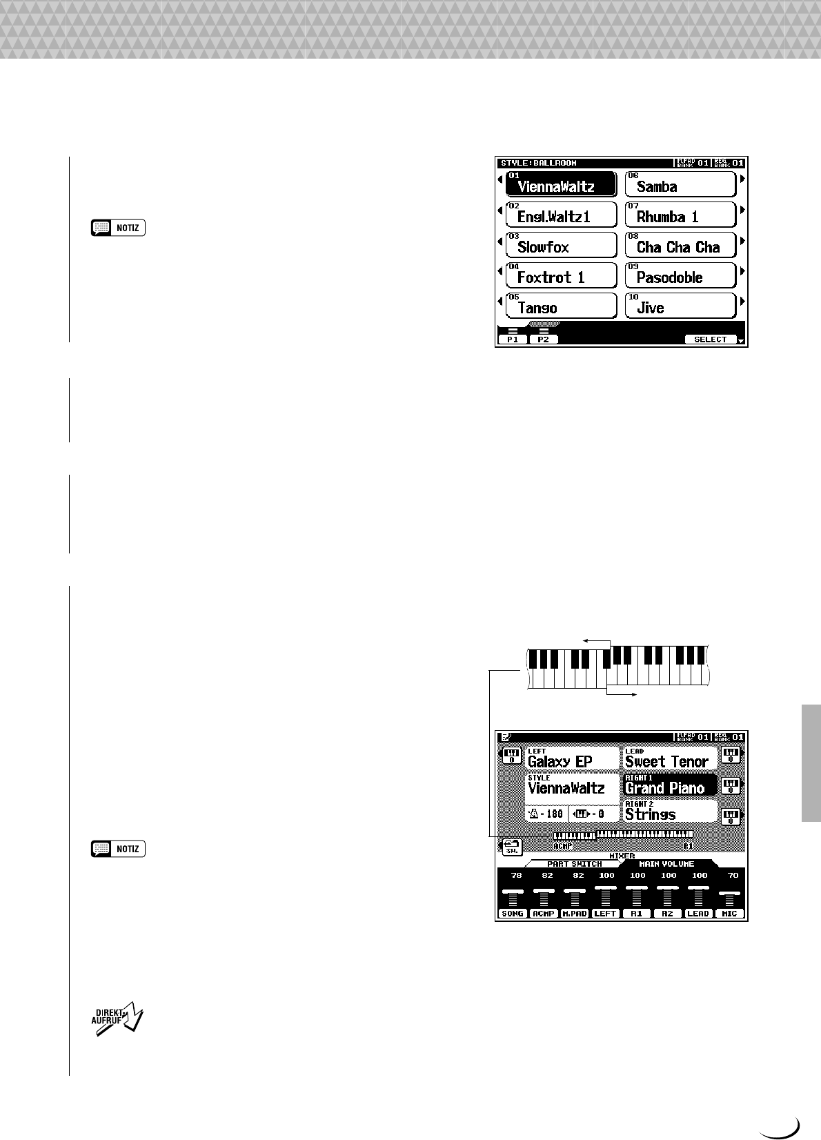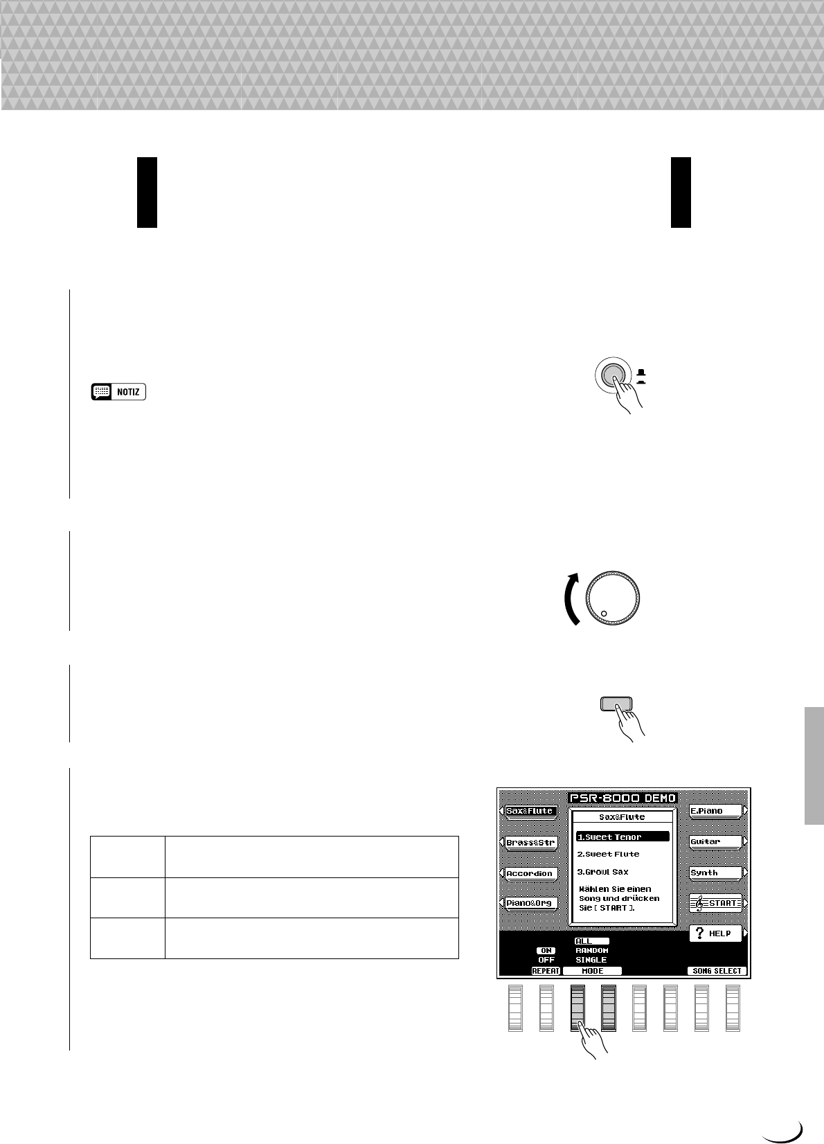 - n Spiel-Modi für automatische Baß-/Akkordbegleitung