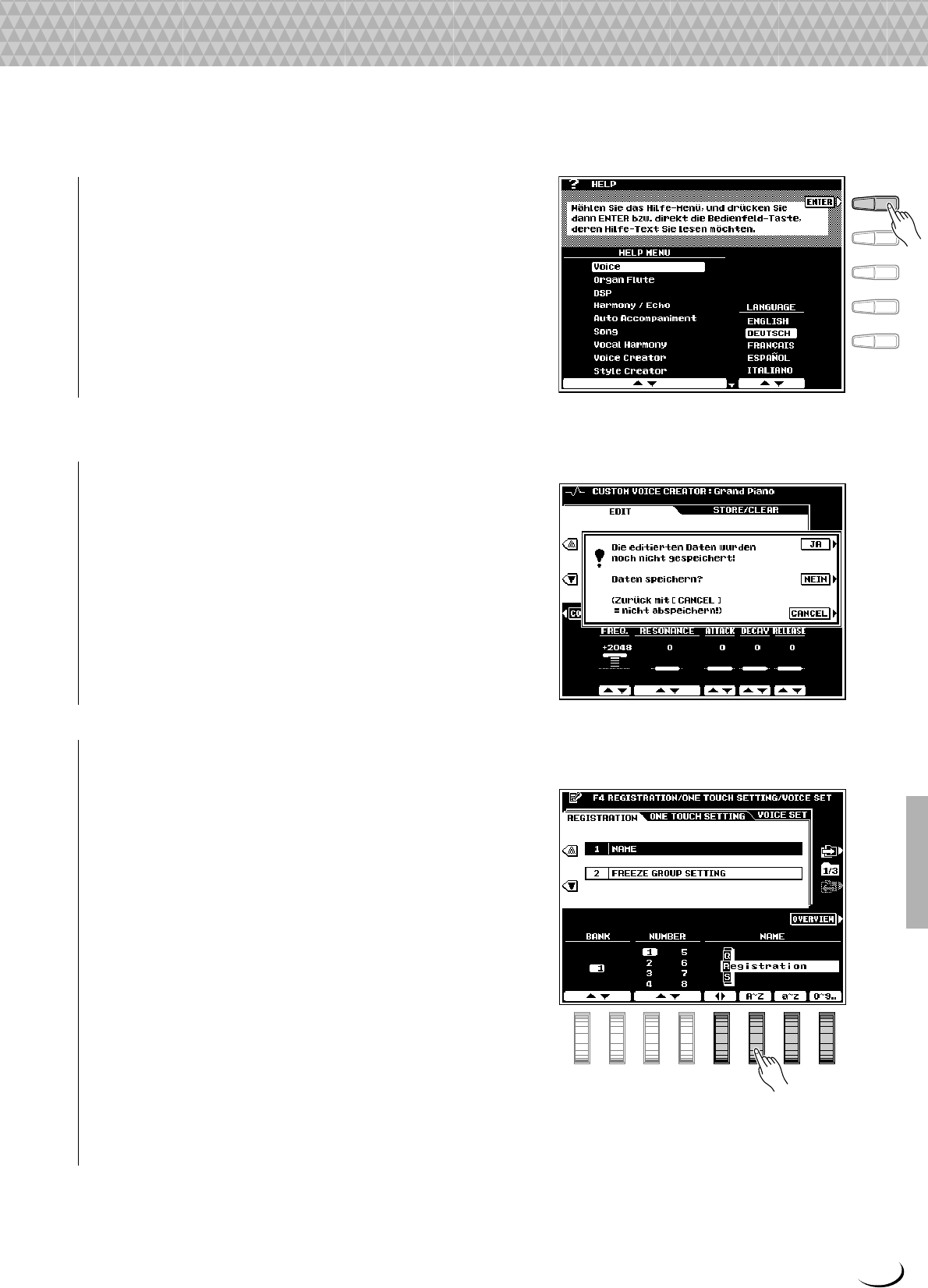 - Das PSR-8000 Display und seine Bedienelemente