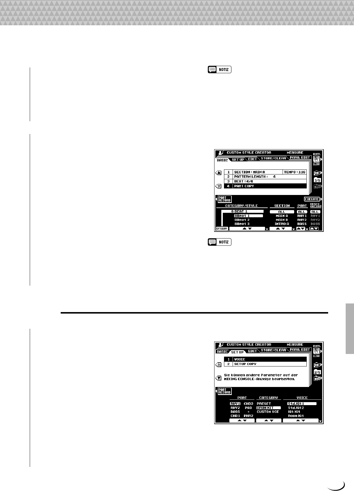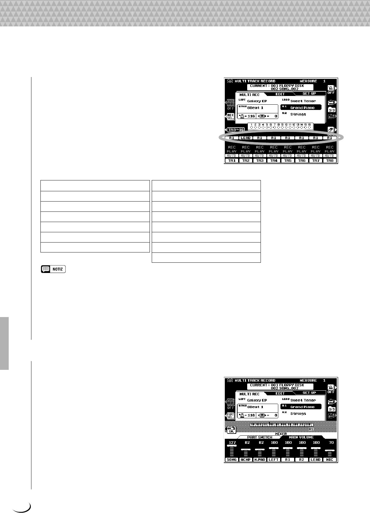 - Bedienvorgang: Auswählen des Parts und Zuordnen einer Stimme