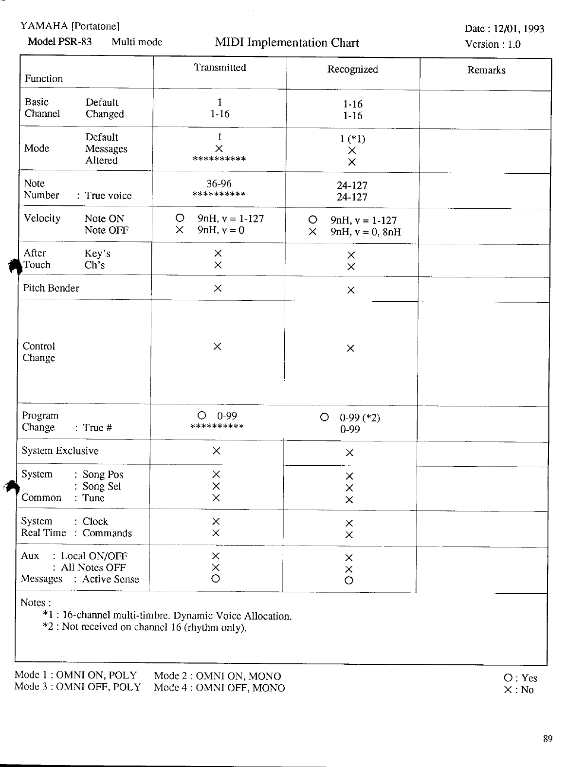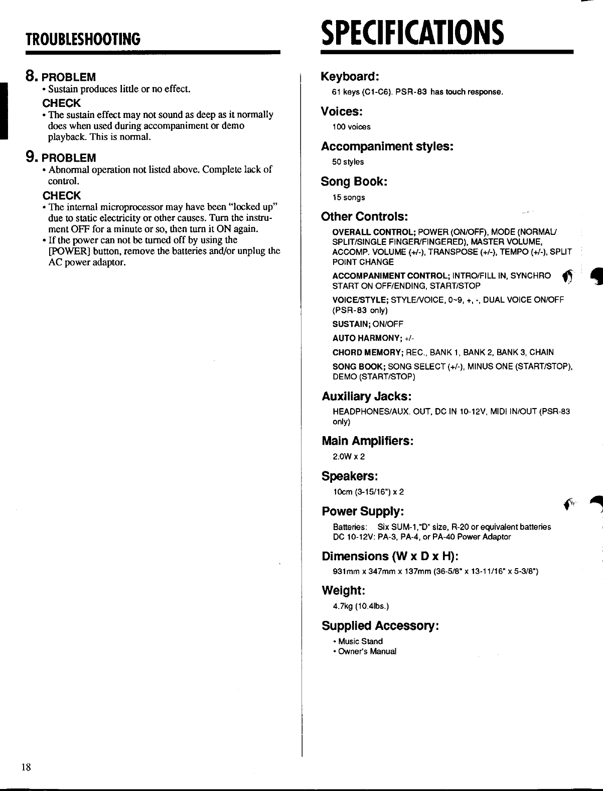 User Manual: Yamaha PSR-83/PSR-82 Owner's Manual (Image)