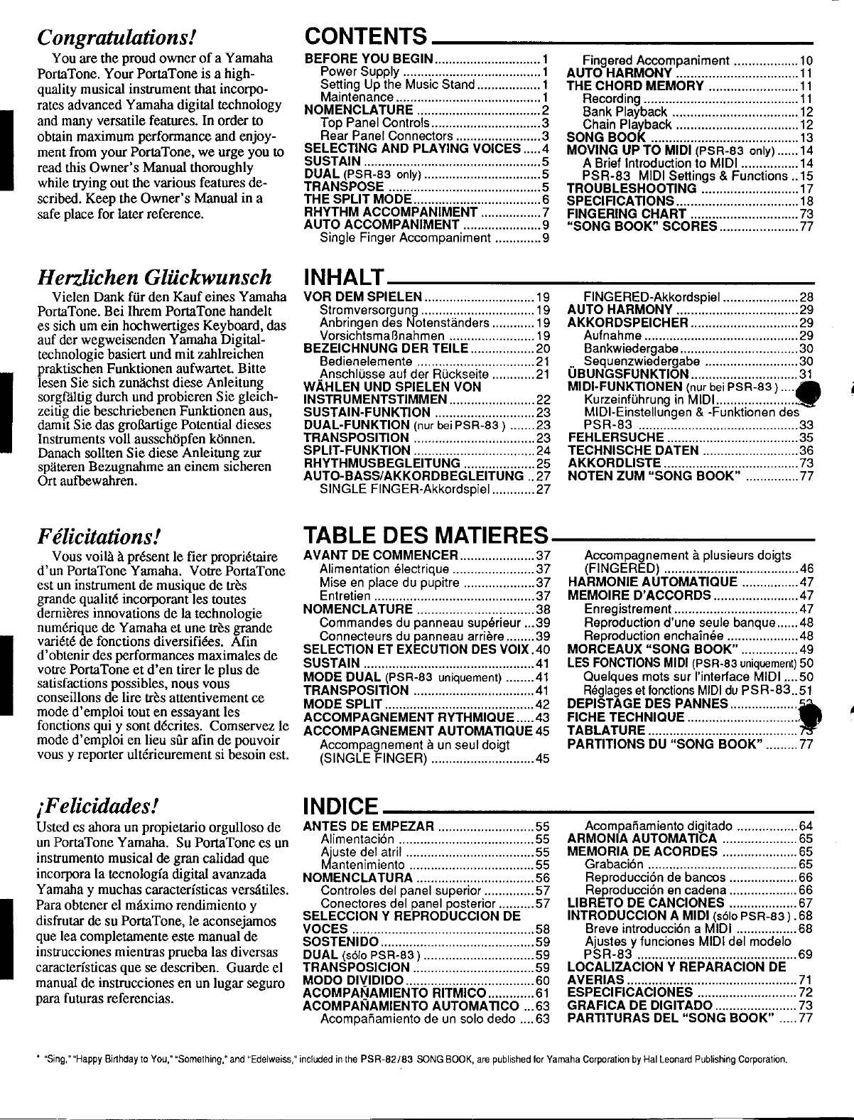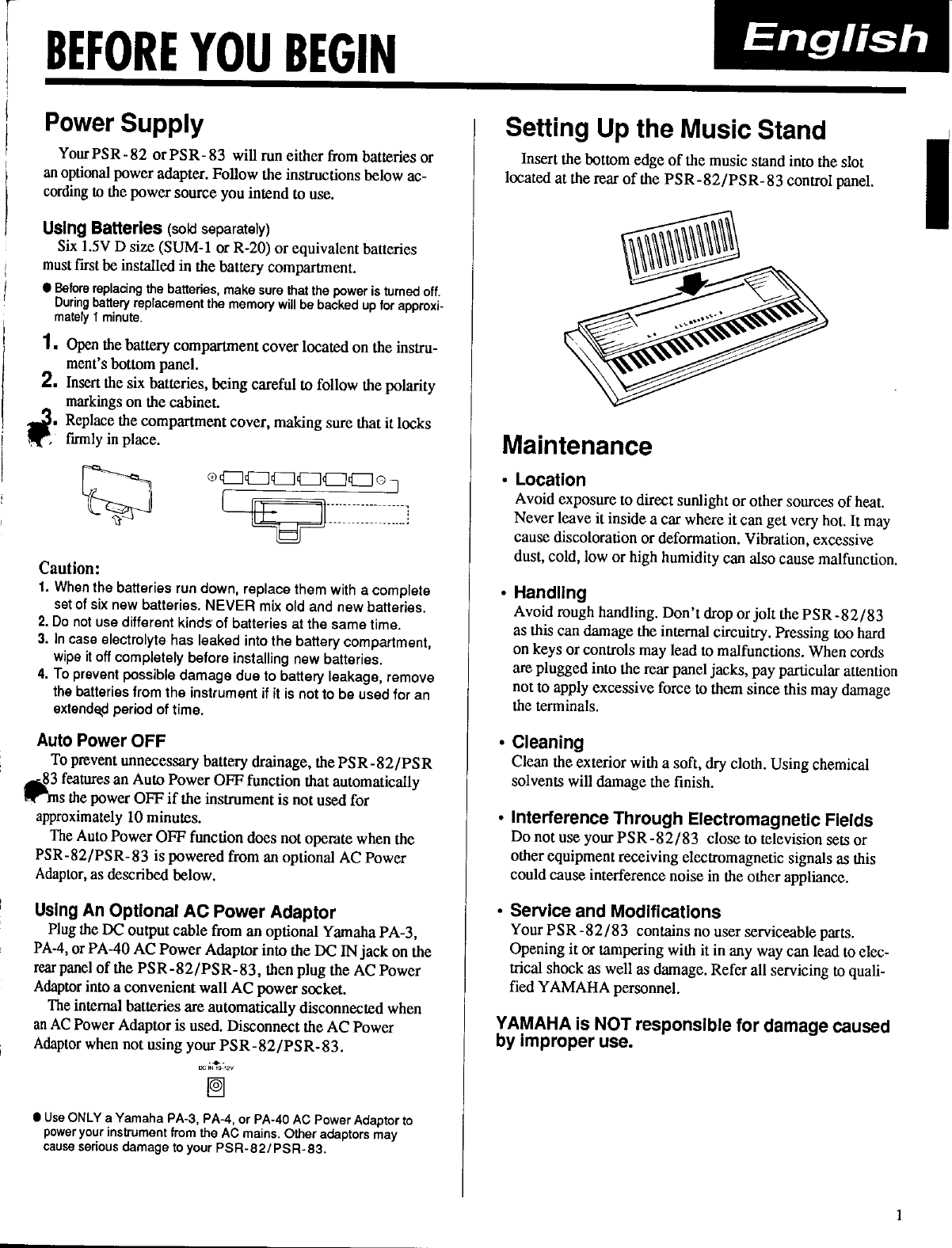 Yamaha PSR 83/PSR 82 Owner's Manual (Image) PSR83E
