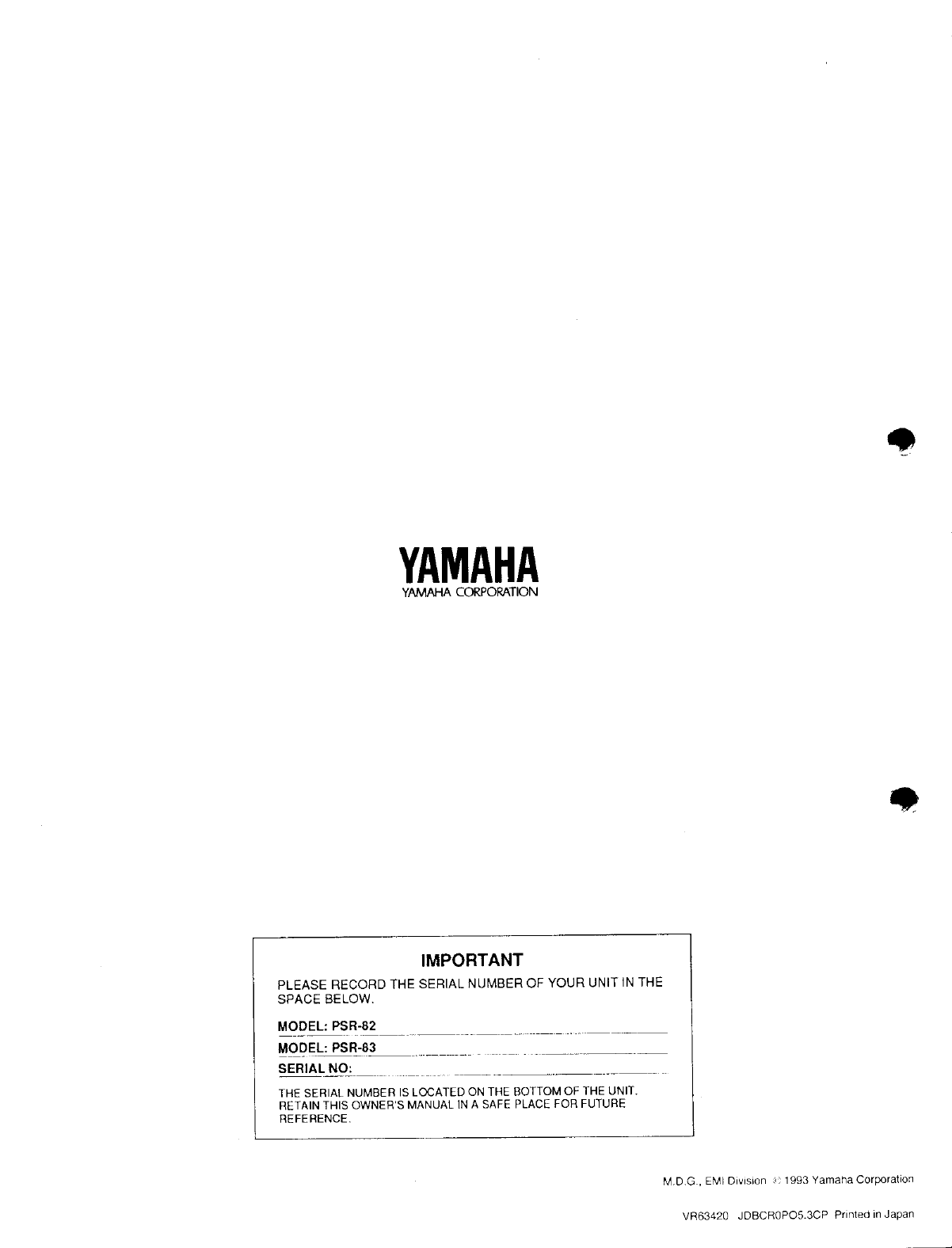 Yamaha Corporation PSR-82 Owner's Manual psr83e Yamaha Corporation - PSR-82 - Owner's Manual