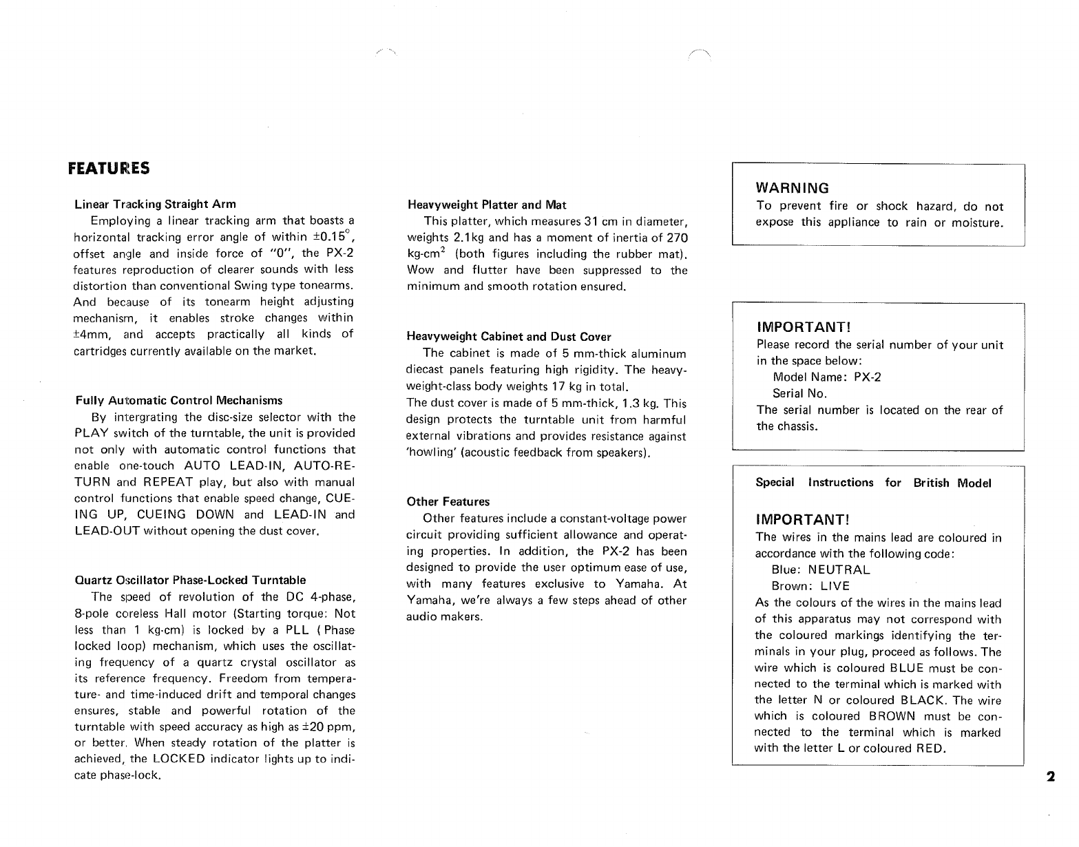 Yamaha .橡.ページ) PX 2 OWNER'S MANUAL