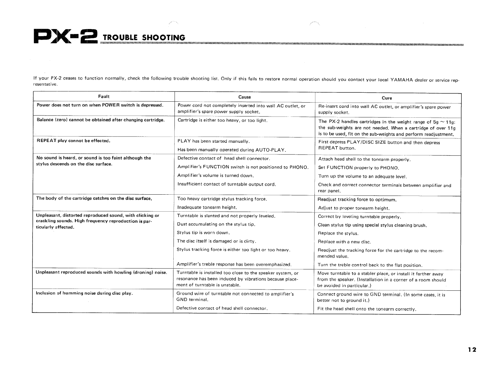 User Manual: Yamaha PX-2 OWNER'S MANUAL