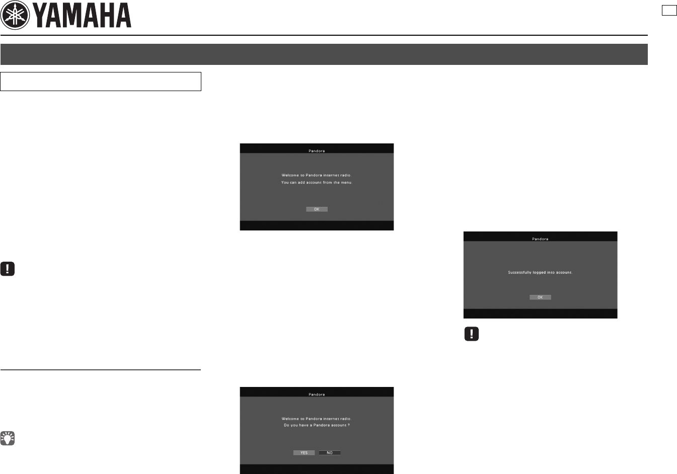 User Manual: Yamaha Supplement for Pandora