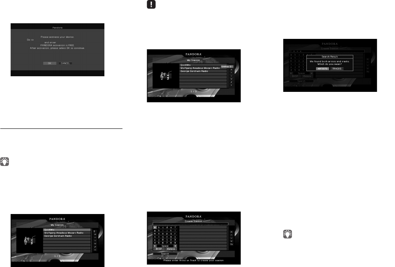 details, see “Creating Pandora stations”