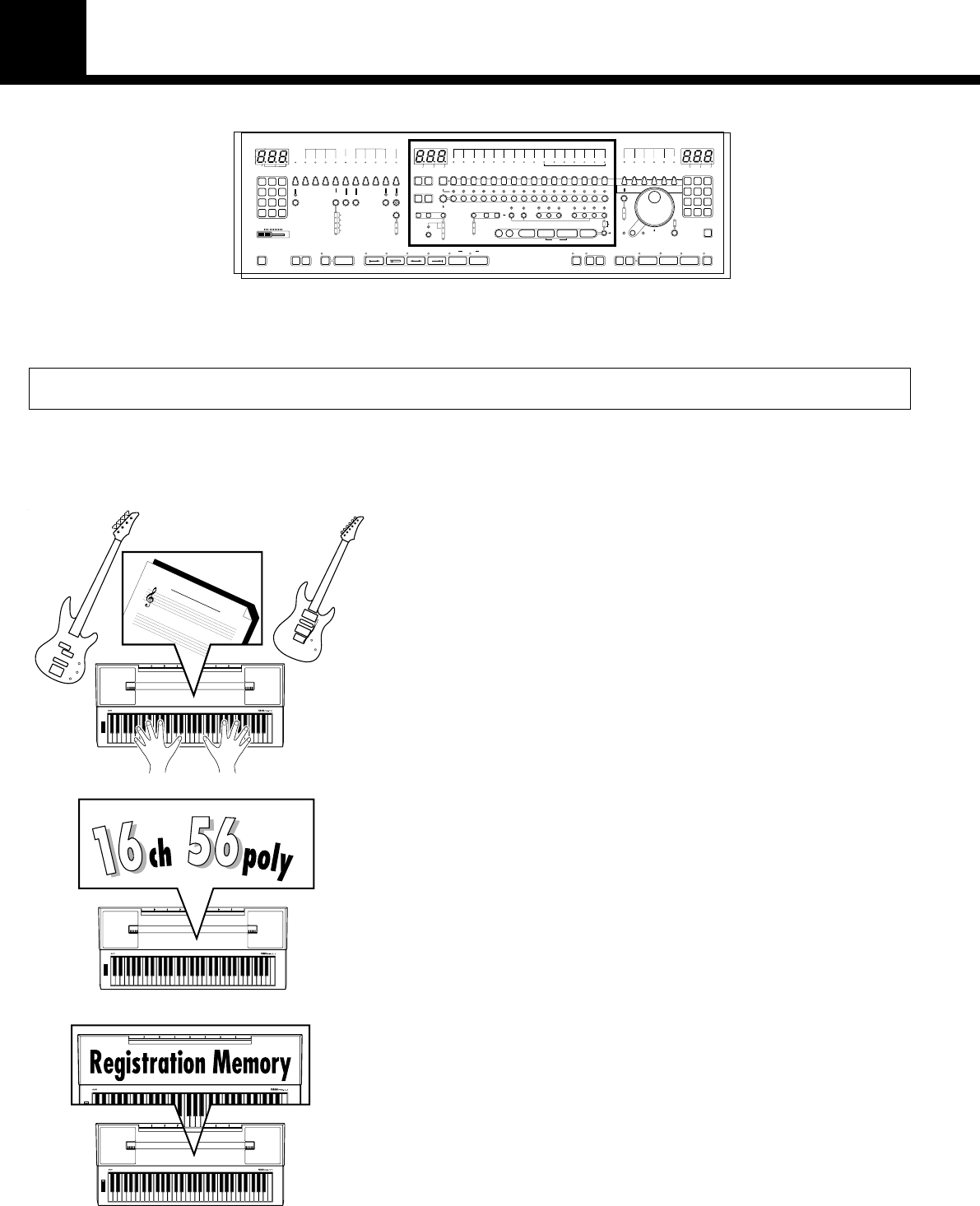 ●Puissant générateur de sons offrant une polyphonie maximale de 56 notes; également contrôlable