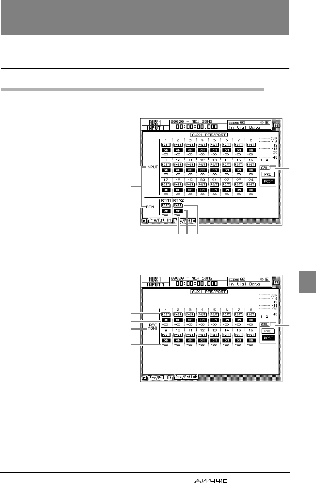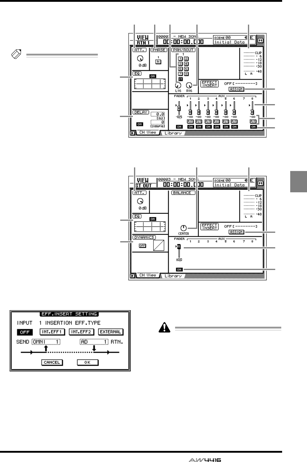 - AUX7/EFF1 and AUX8/EFF2 screens