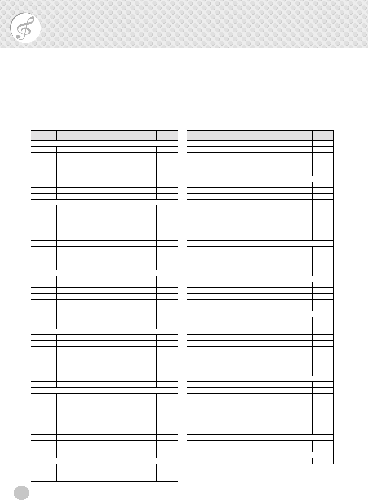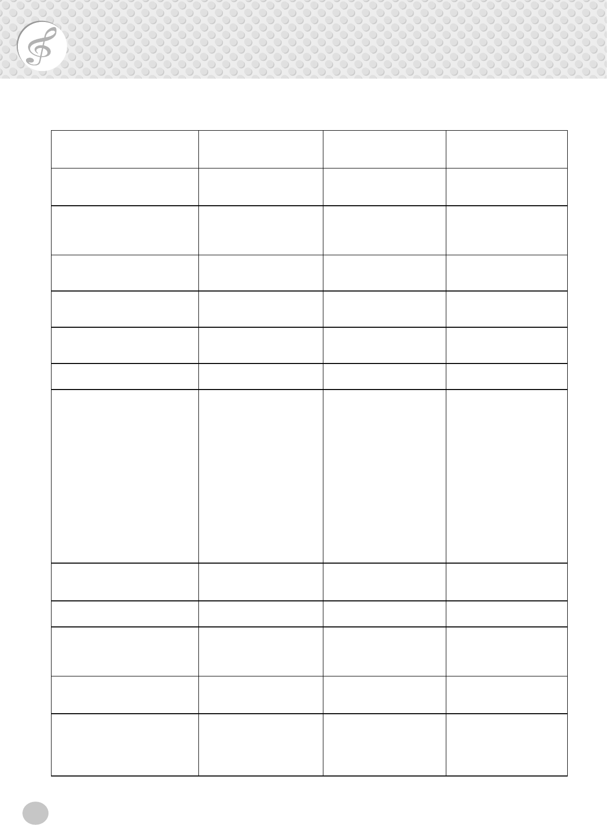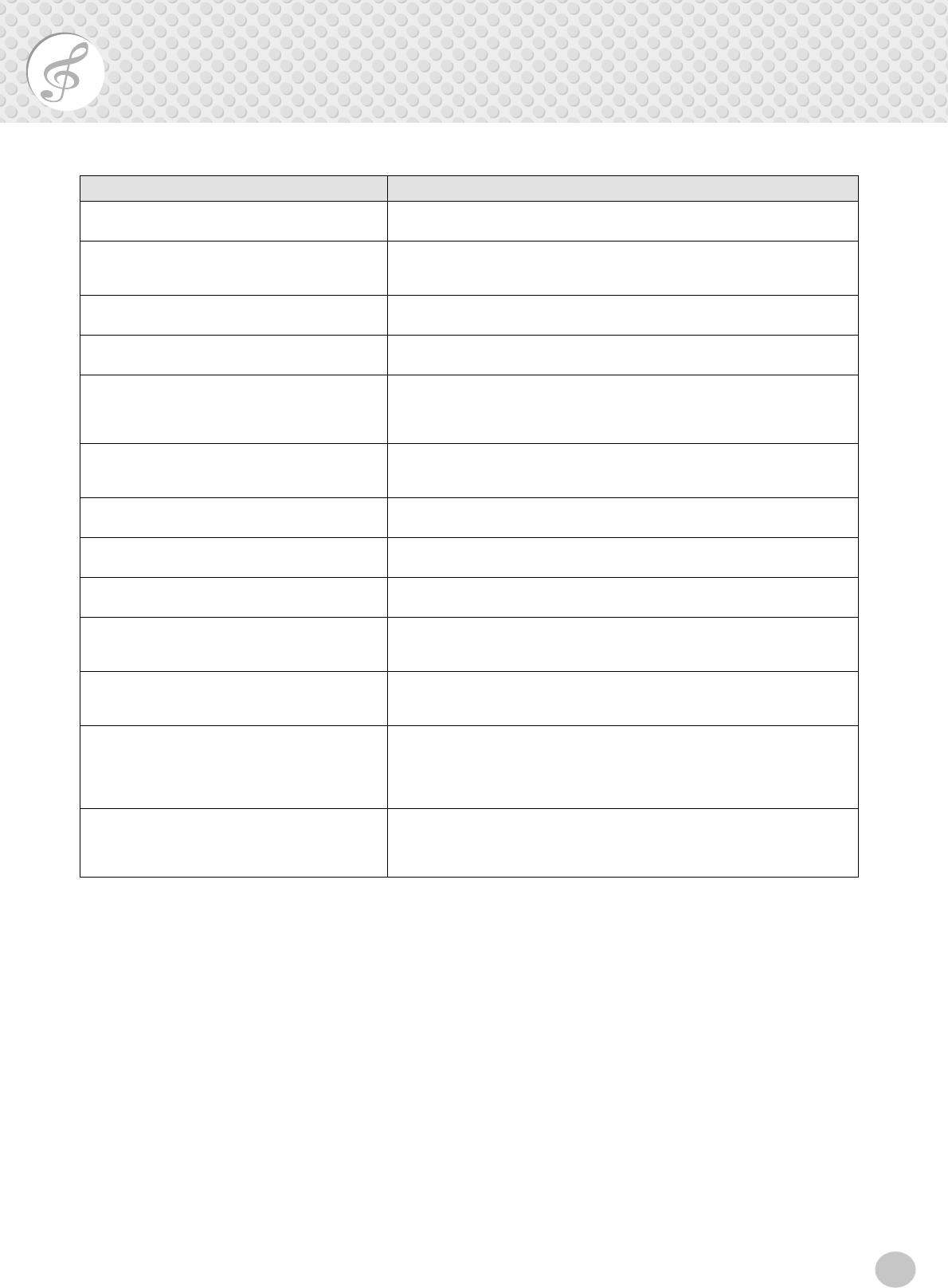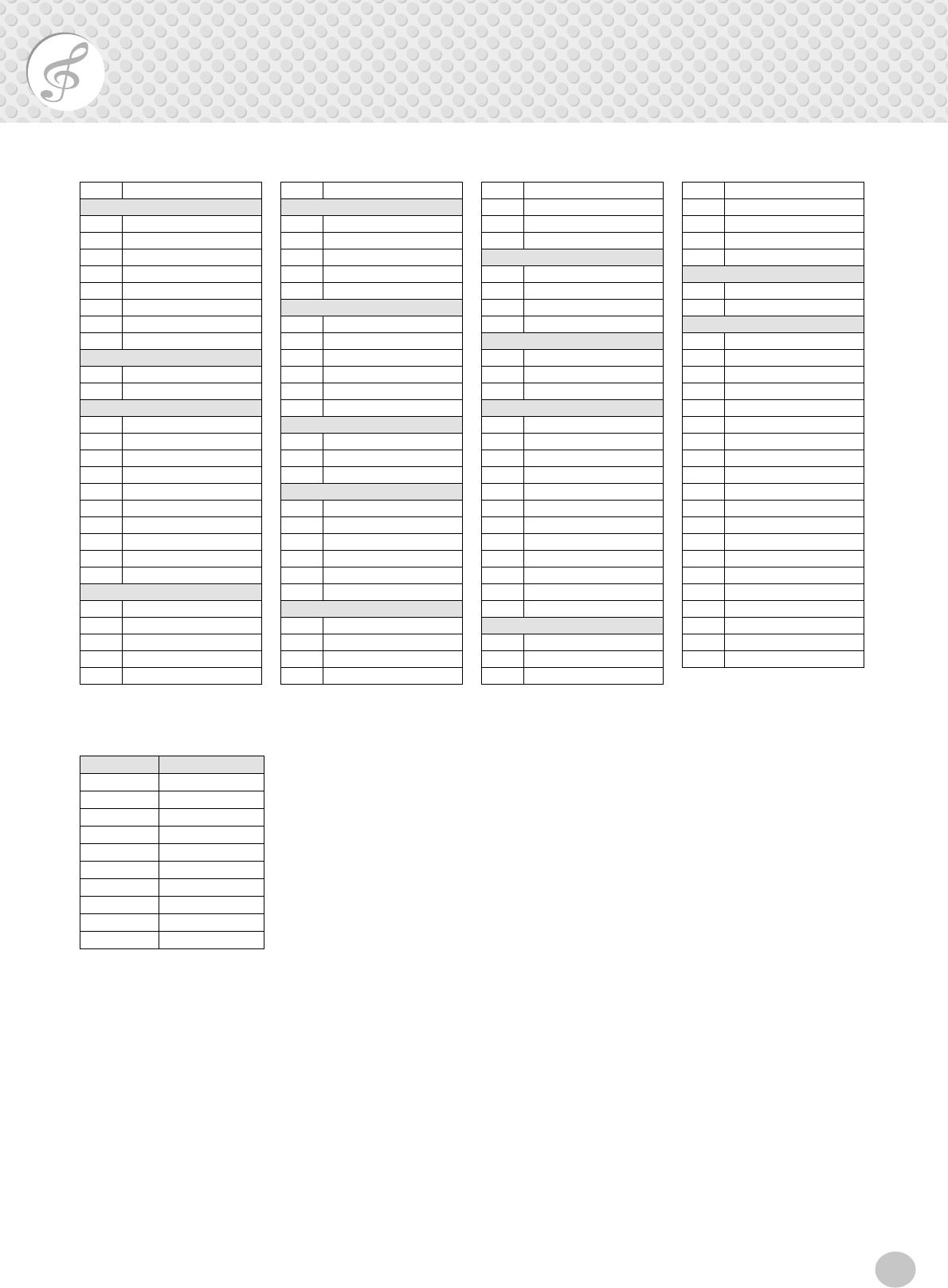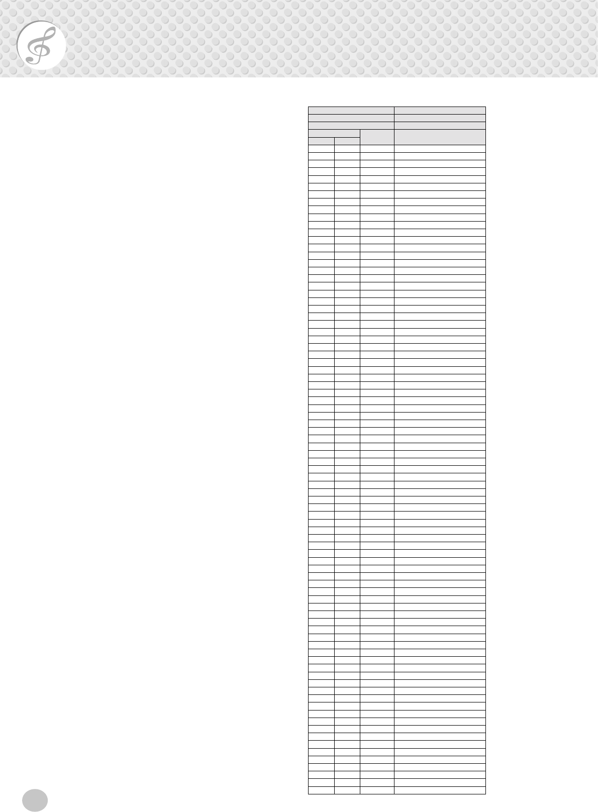 - MIDI Implementation Chart