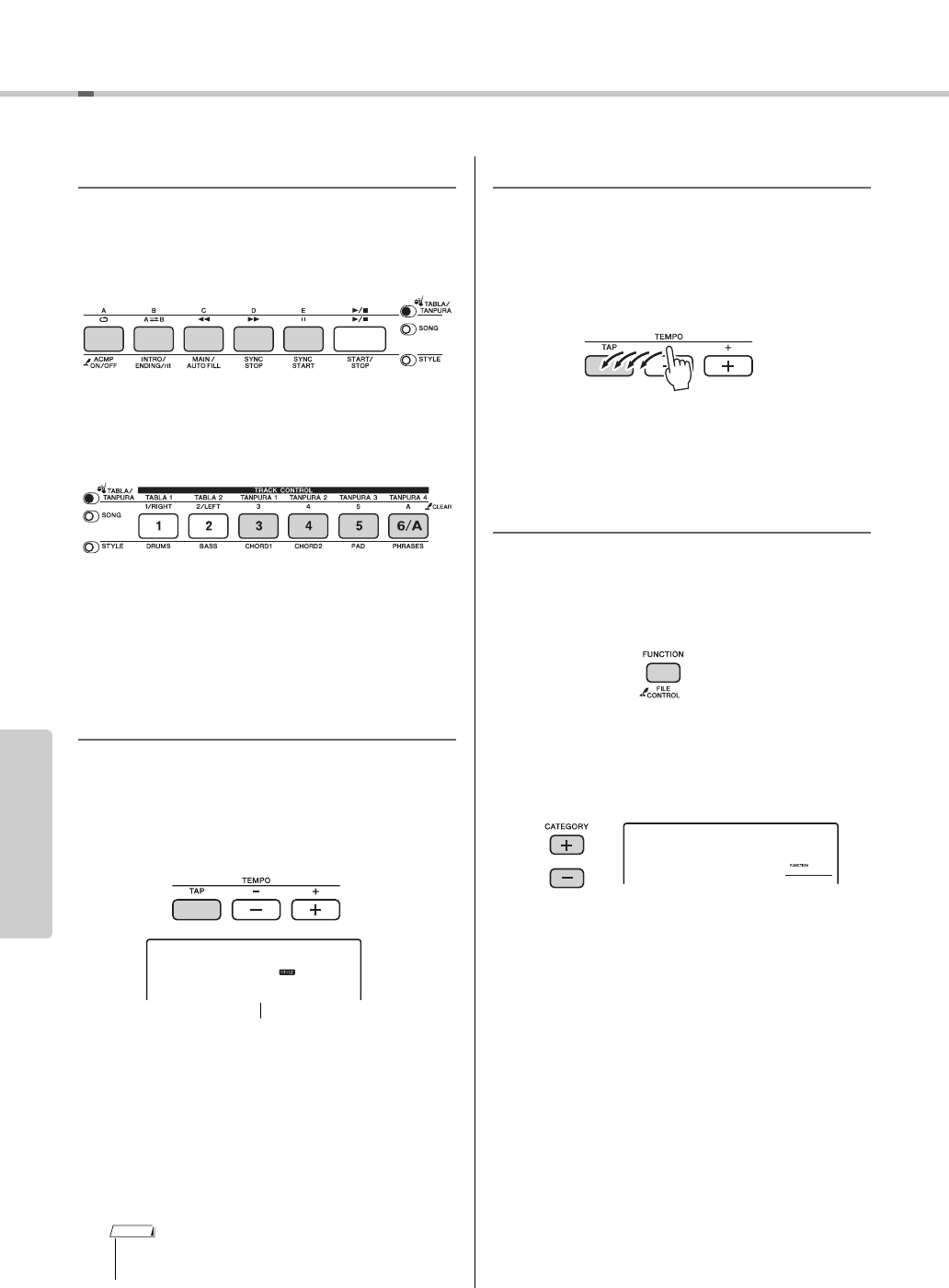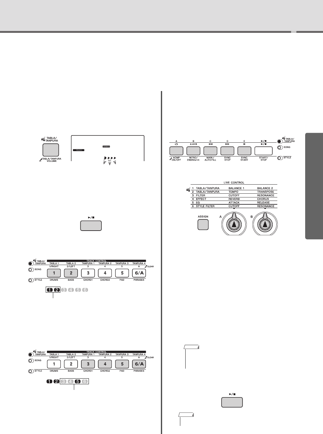 - Styles (Auto Accompaniment) and Tabla/Tanpura patterns