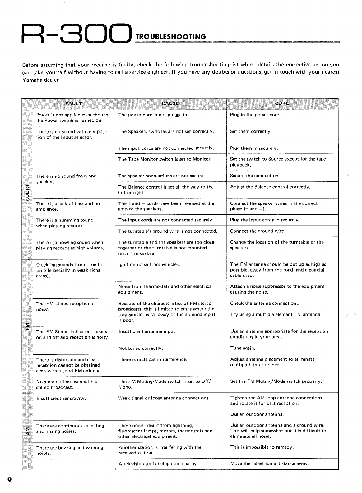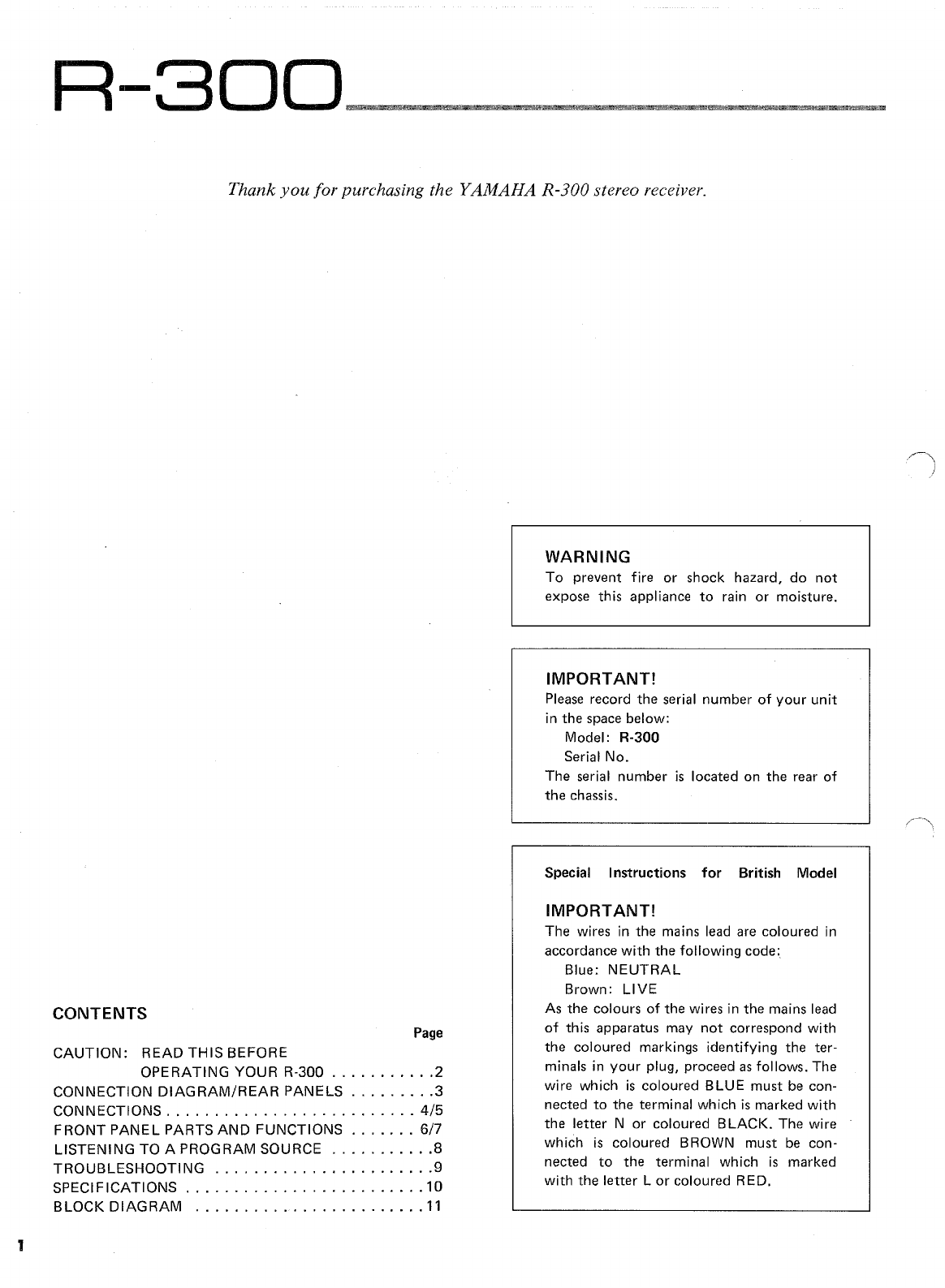 User Manual: Yamaha R-300 OWNER'S MANUAL