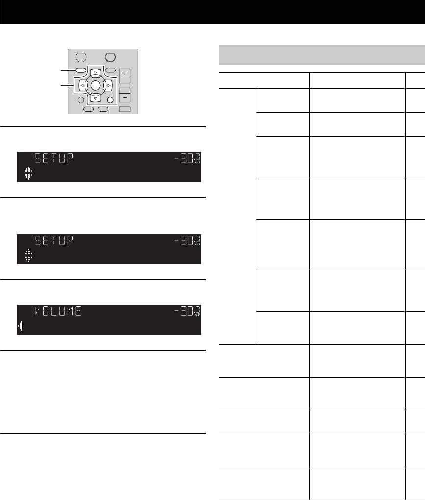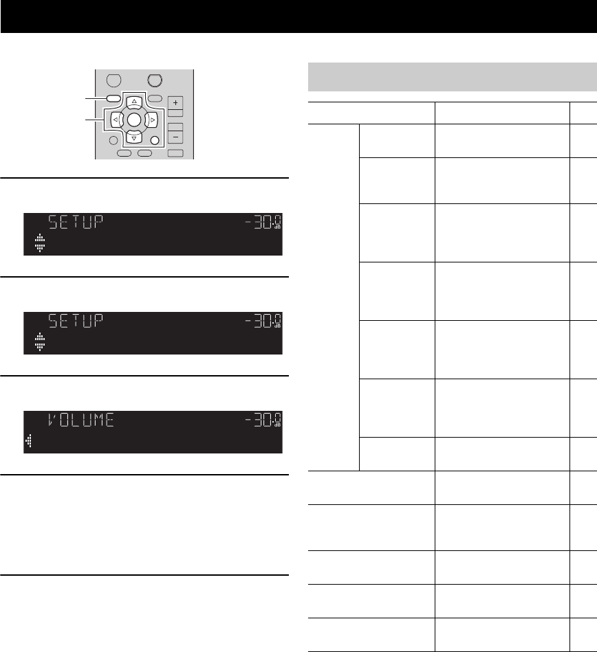 - Configuration des diverses fonctions (menu SETUP)