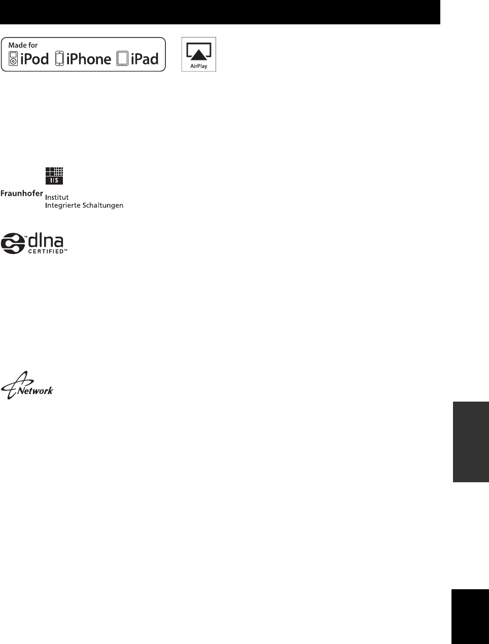 - Lecture de musique issue d’iTunes ou d’un iPod via un réseau (AirPlay)