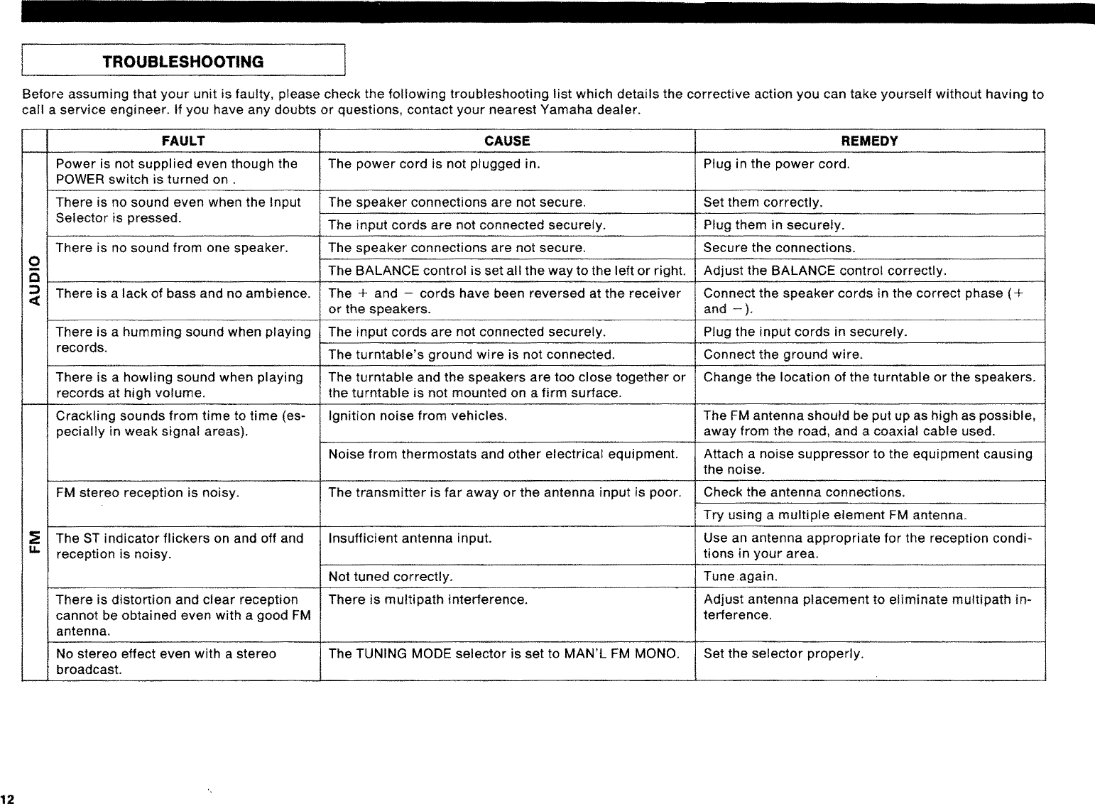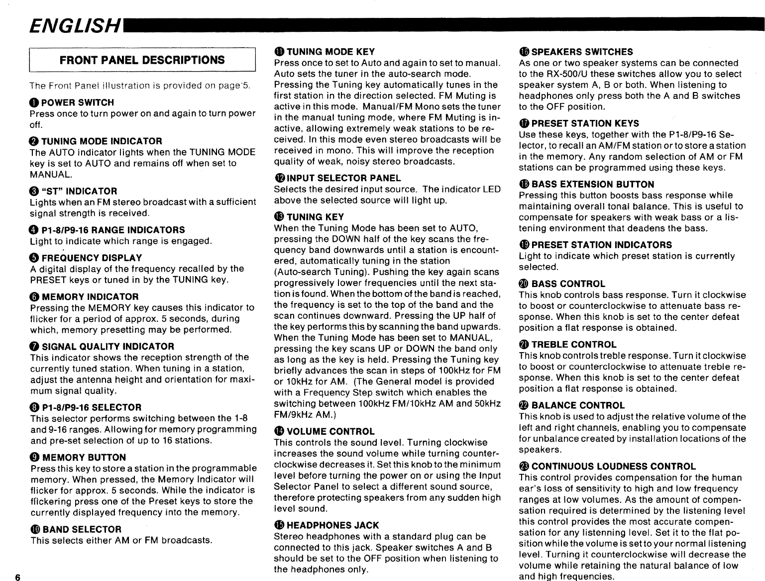 User Manual: Yamaha RX-500 OUNER'S MANUAL
