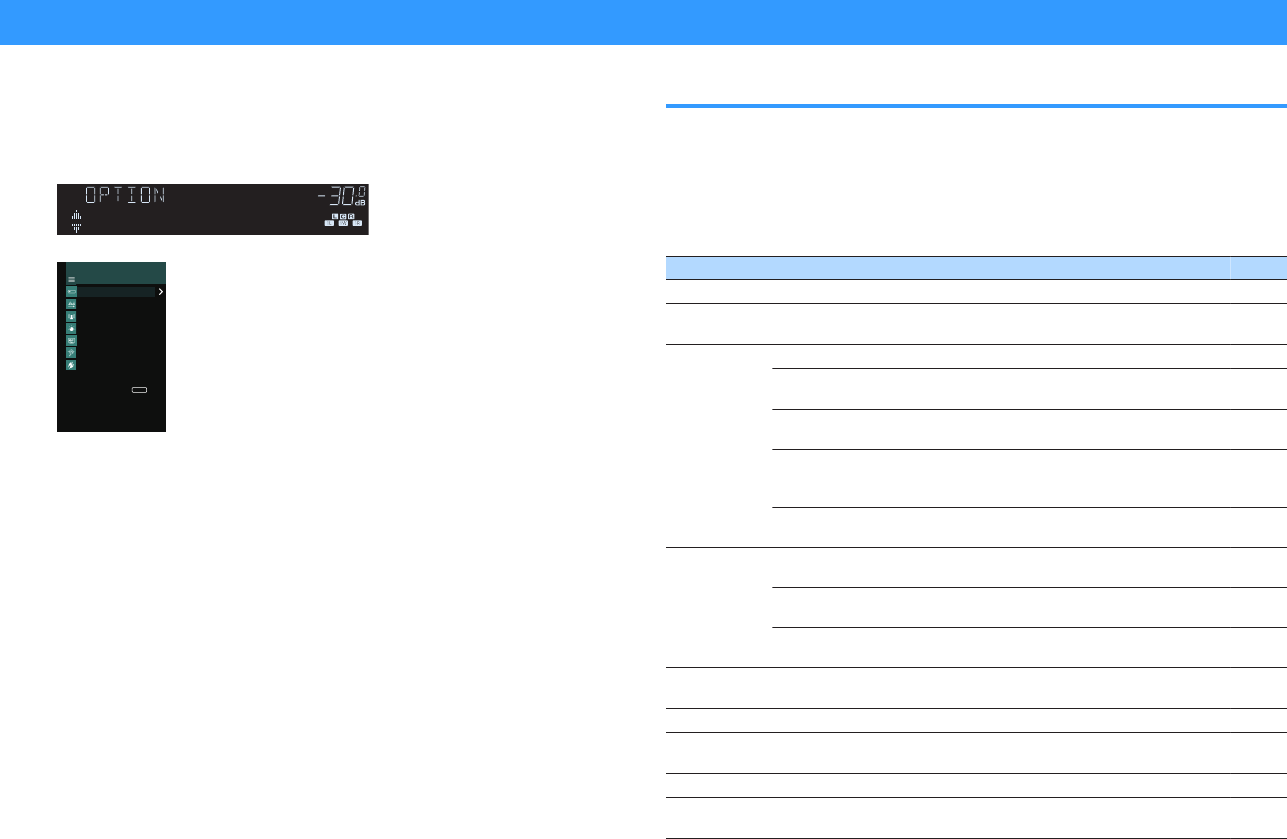 - Configuring playback settings for different playback sources (Option menu)