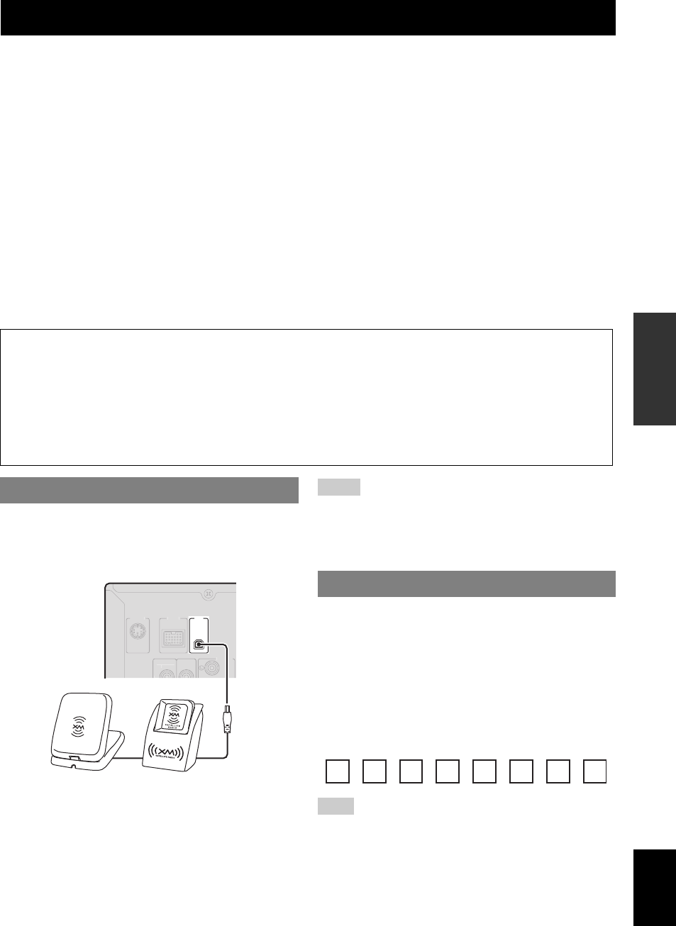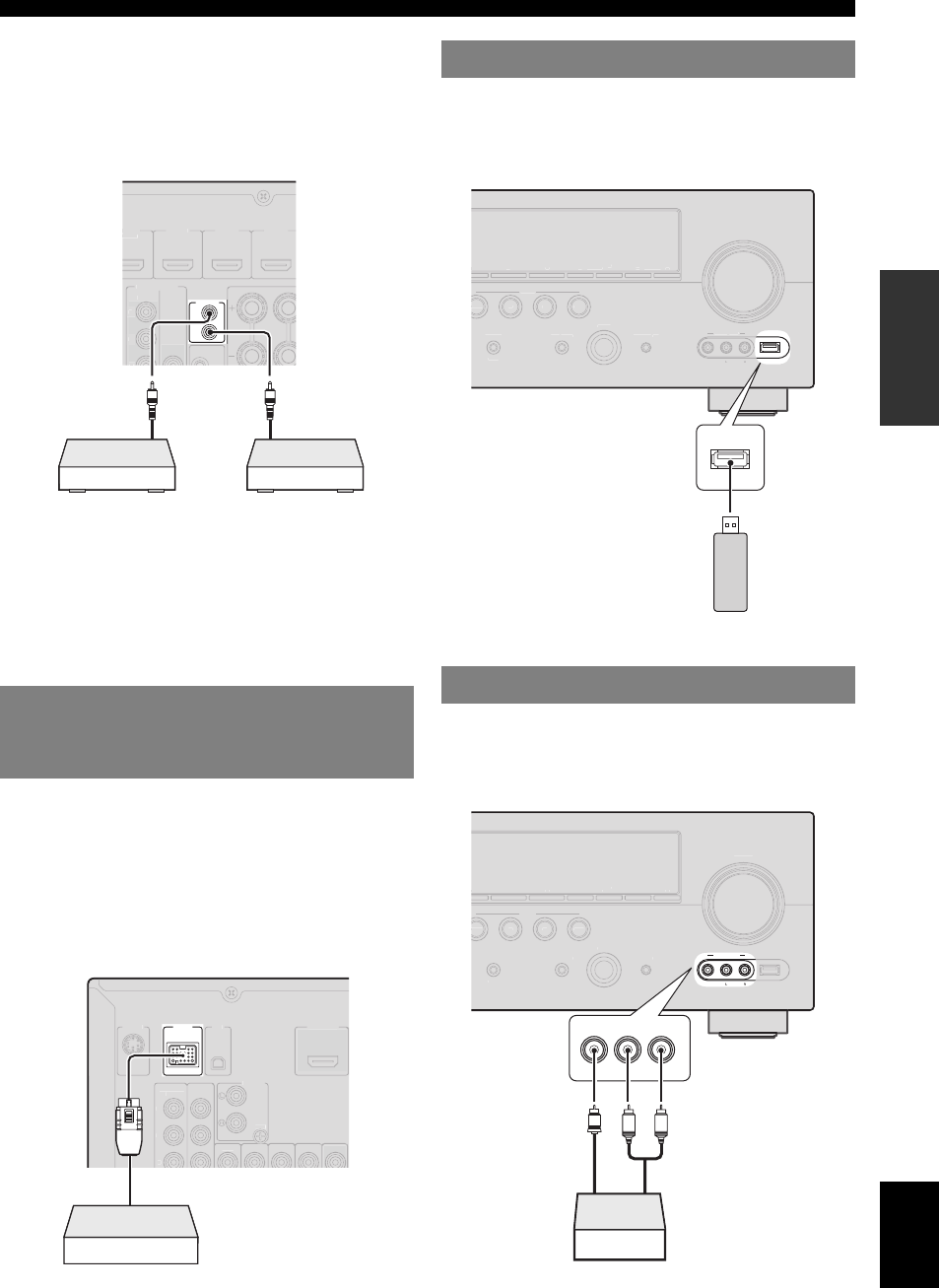 - Connecting a Yamaha iPod universal dock or Bluetooth™ wireless audio receiver