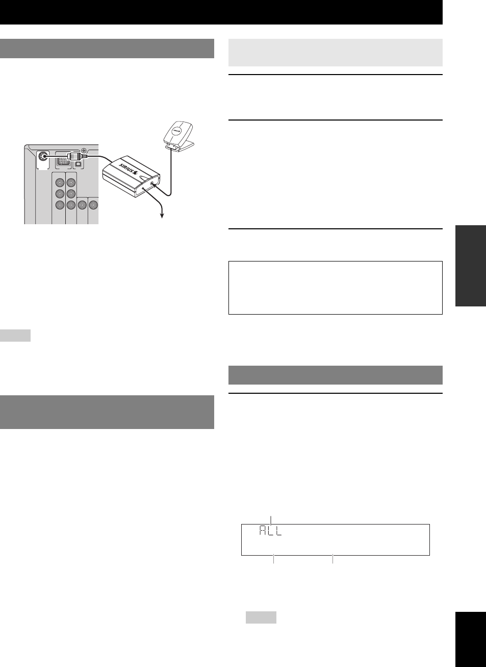 - Connecting a Yamaha iPod universal dock or Bluetooth™ wireless audio receiver