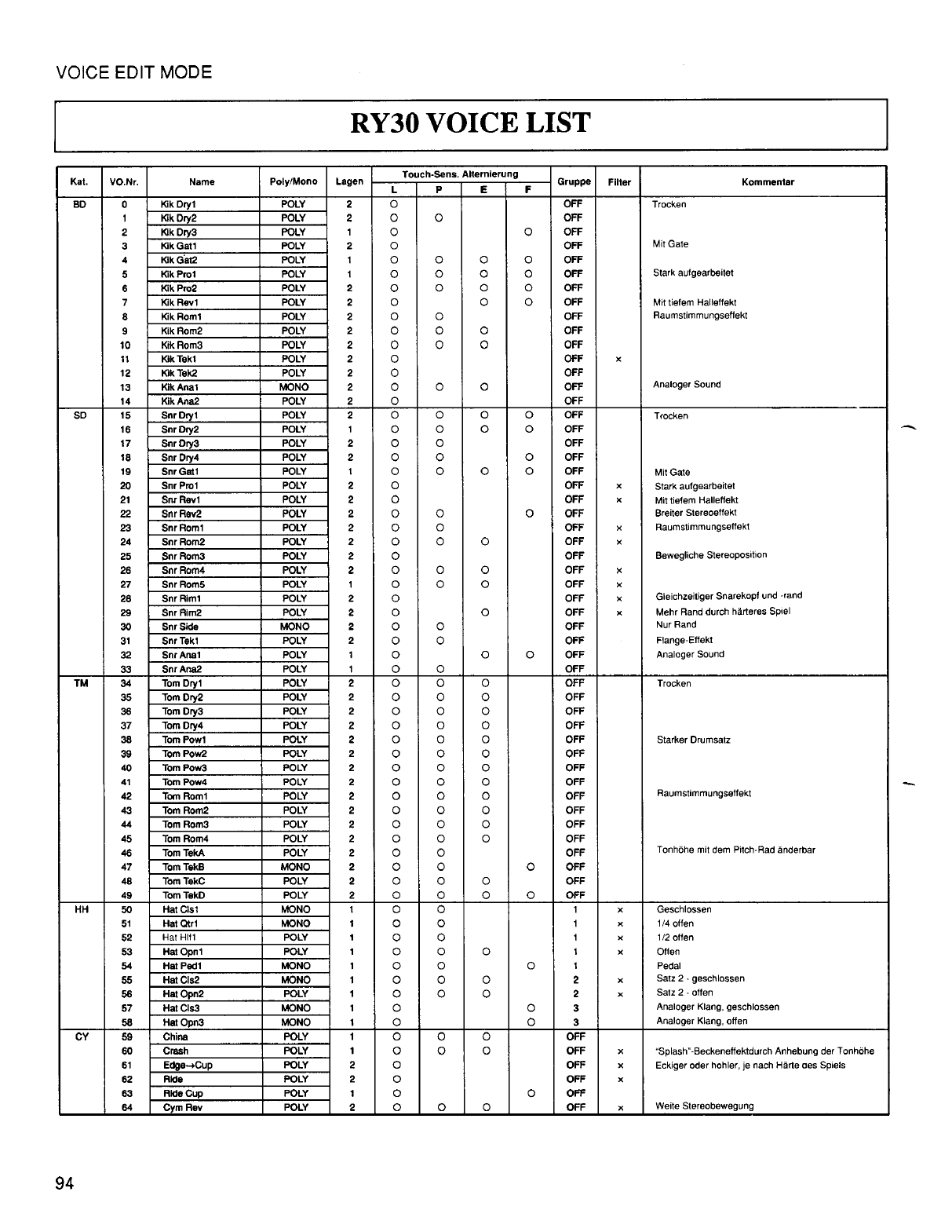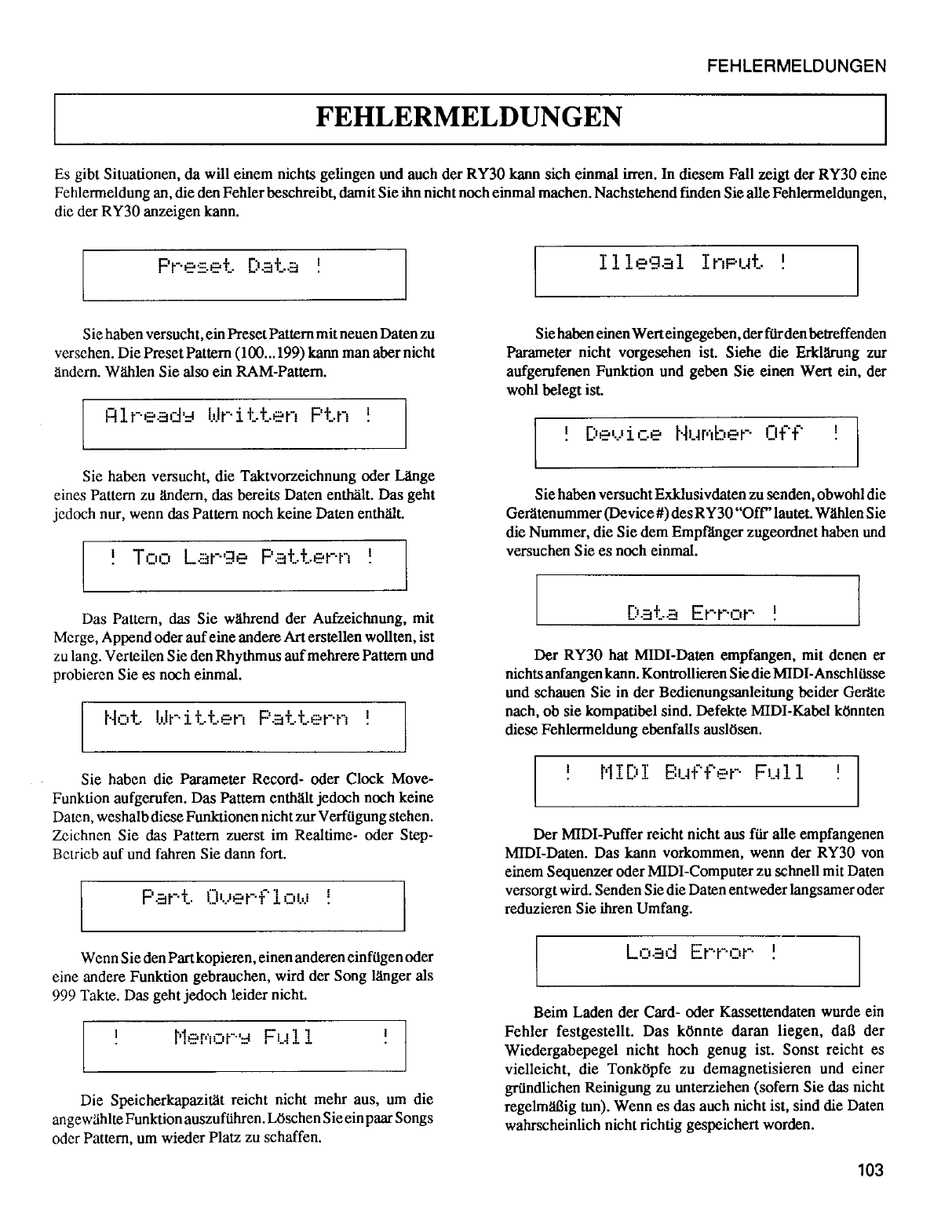User Manual: Yamaha RY30 Owner's Manual (Image)