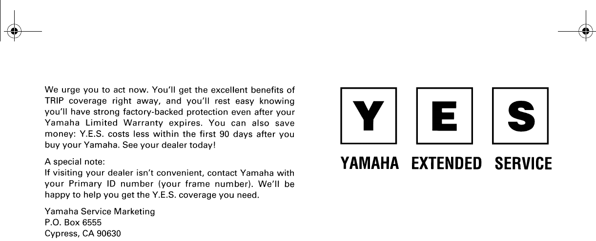 YAMAHA EXTENDED SERVICE (Y.E.S.)