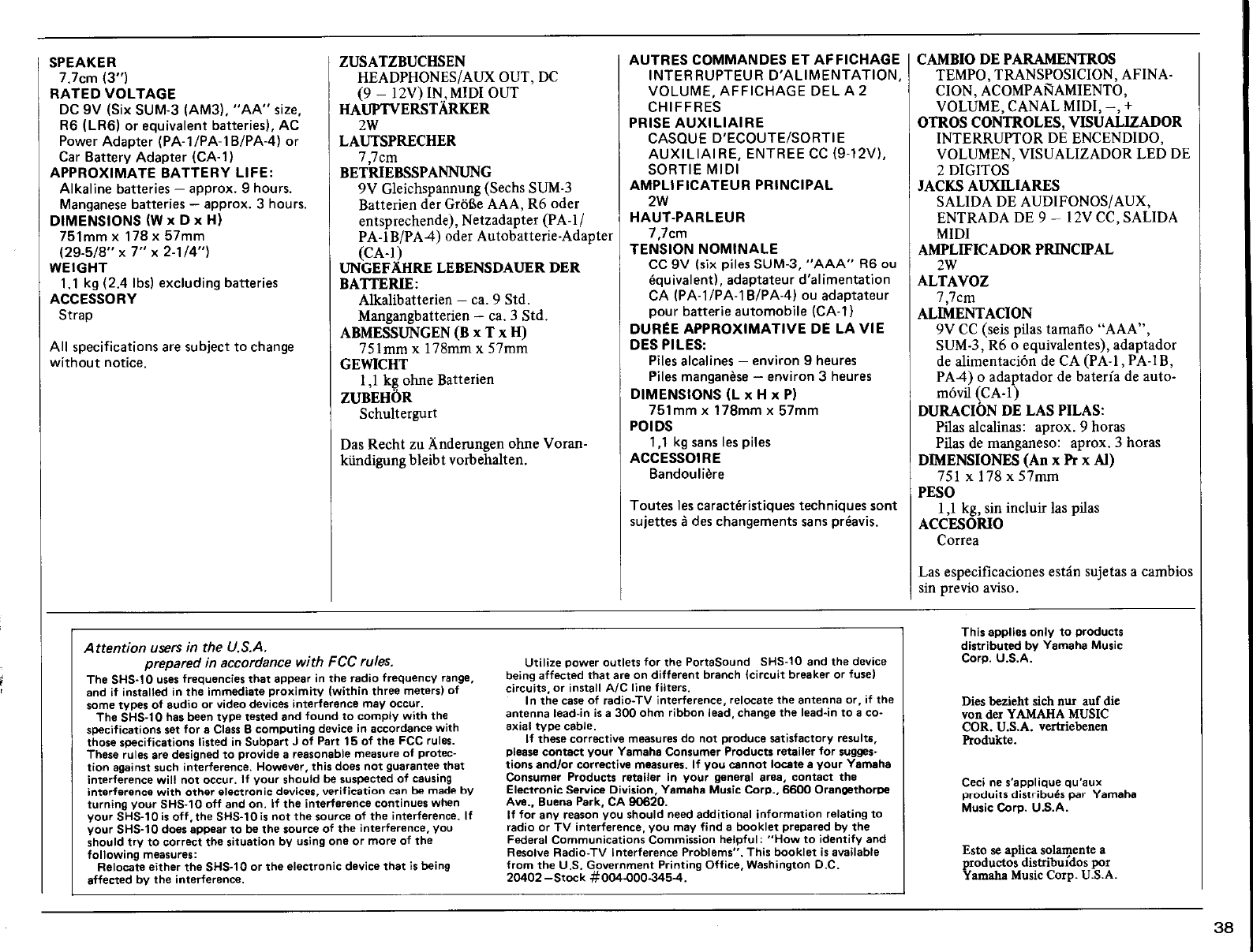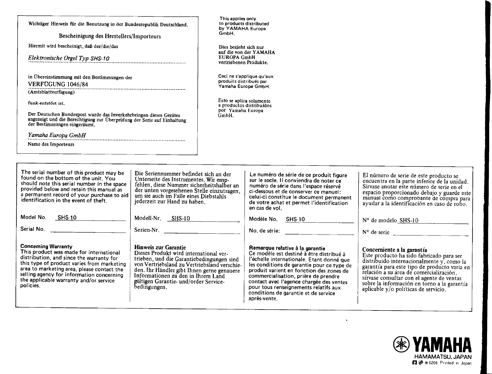 Yamaha SHS 10 Owner's Manual (Image) SHS10E