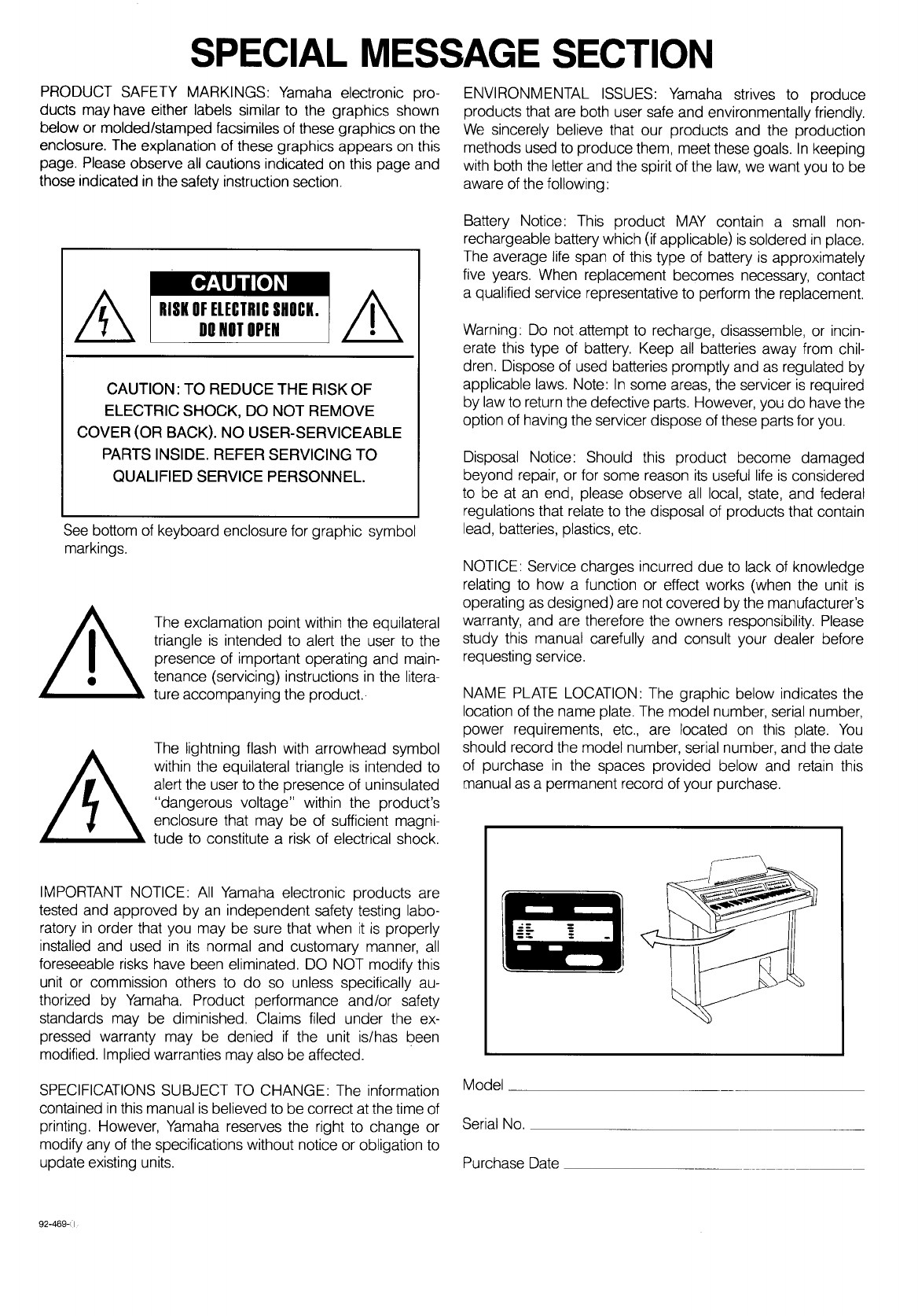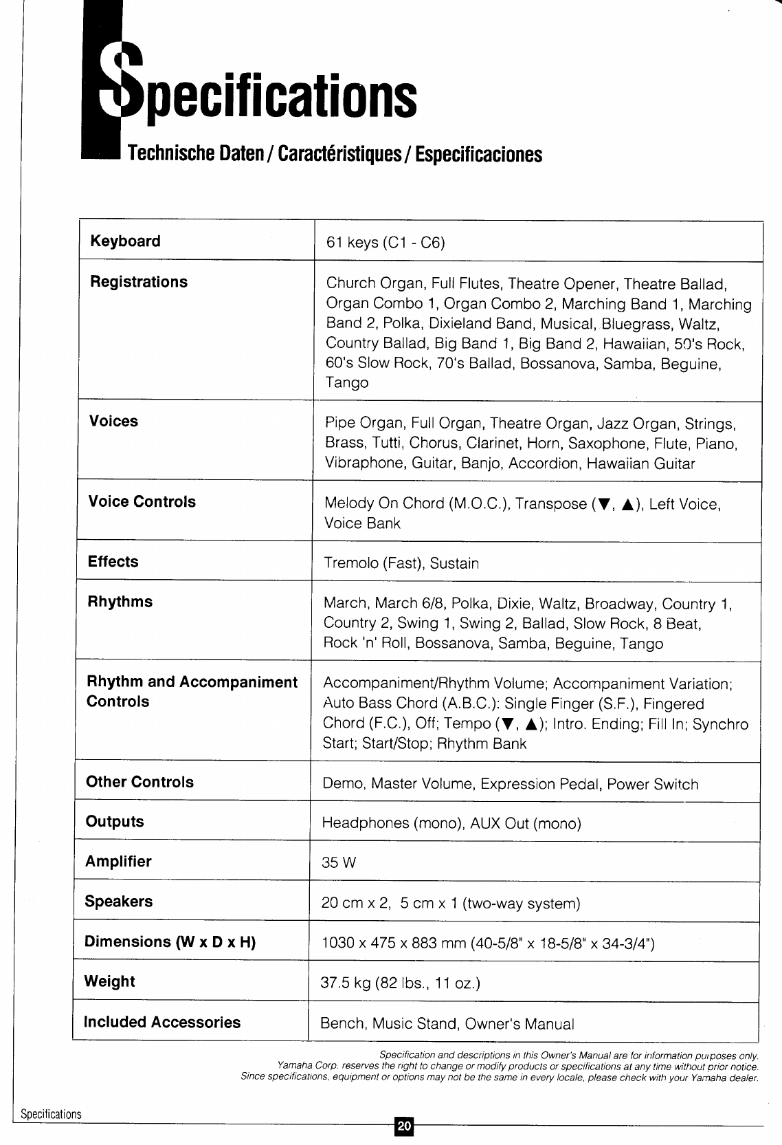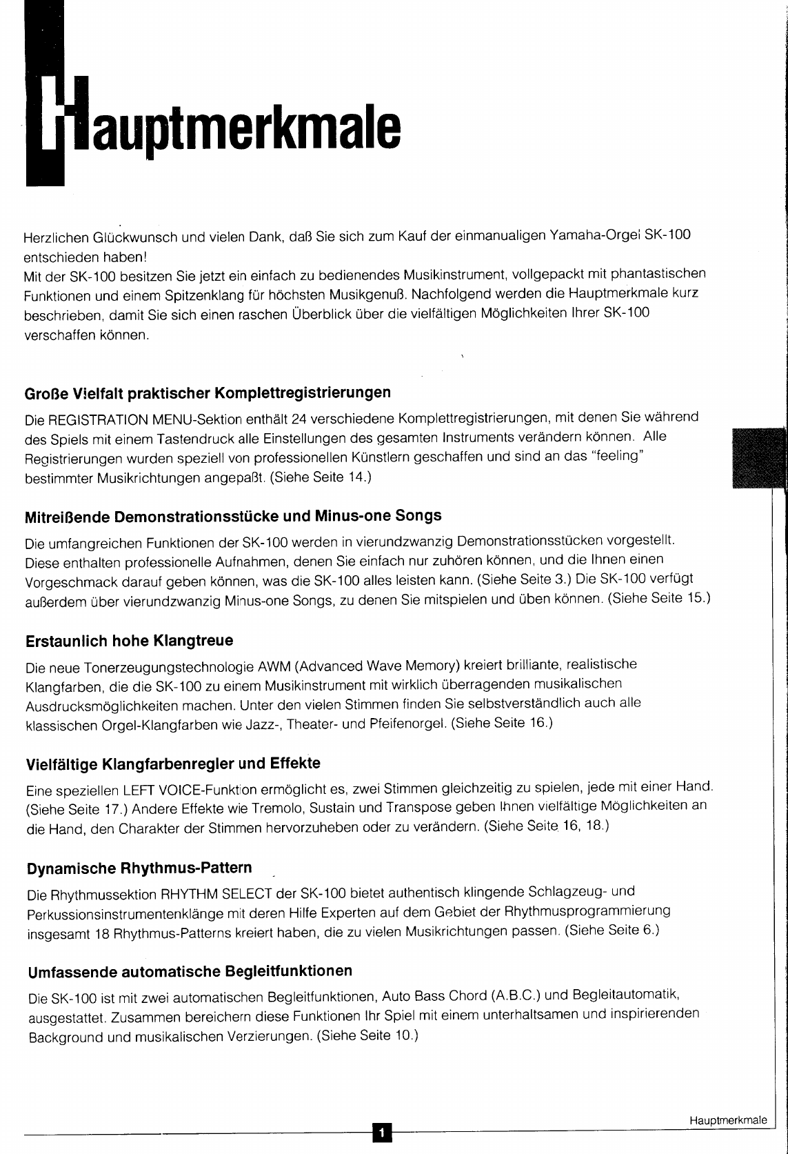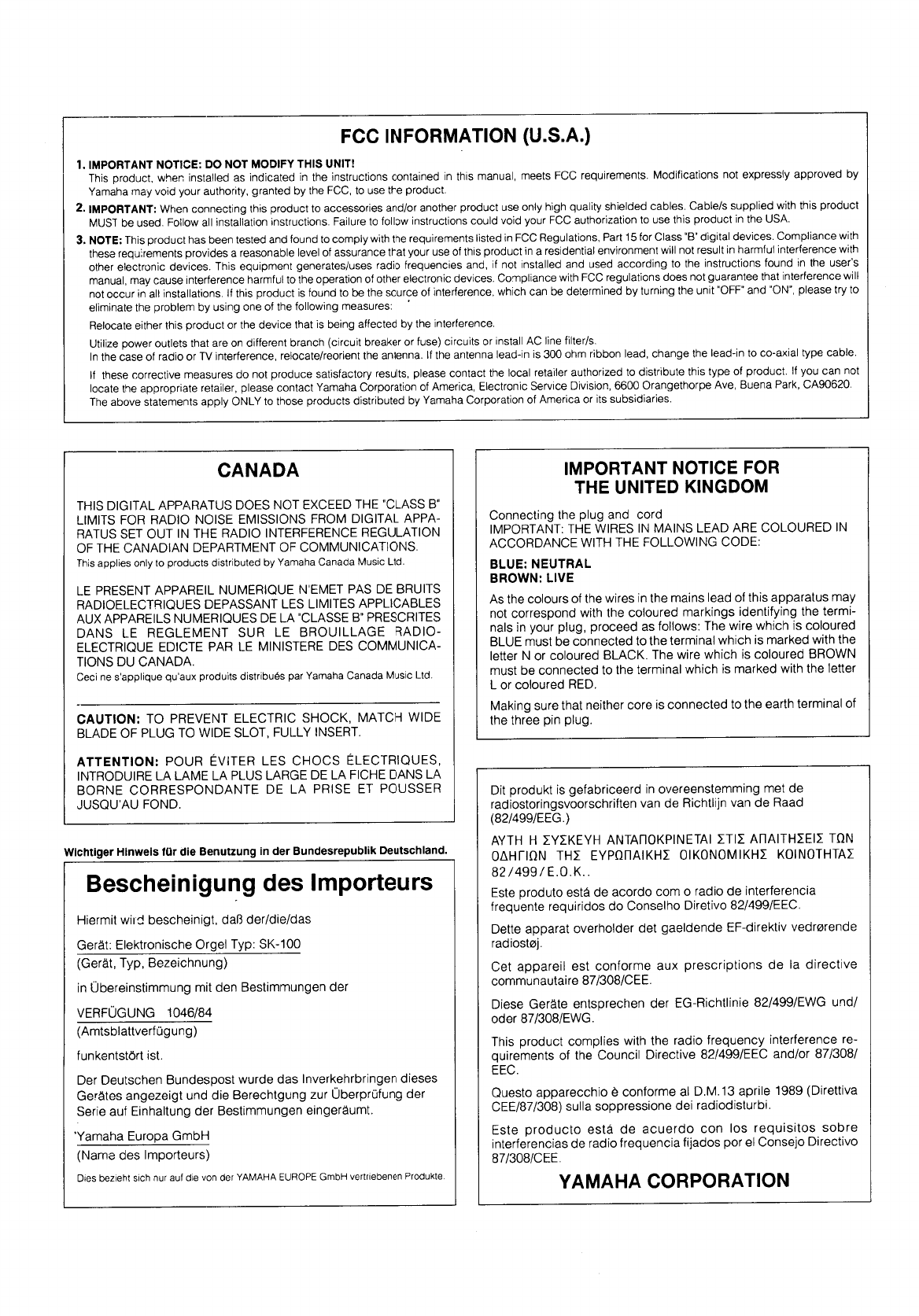 Yamaha SK 100 Owner's Manual (Image) SK100G