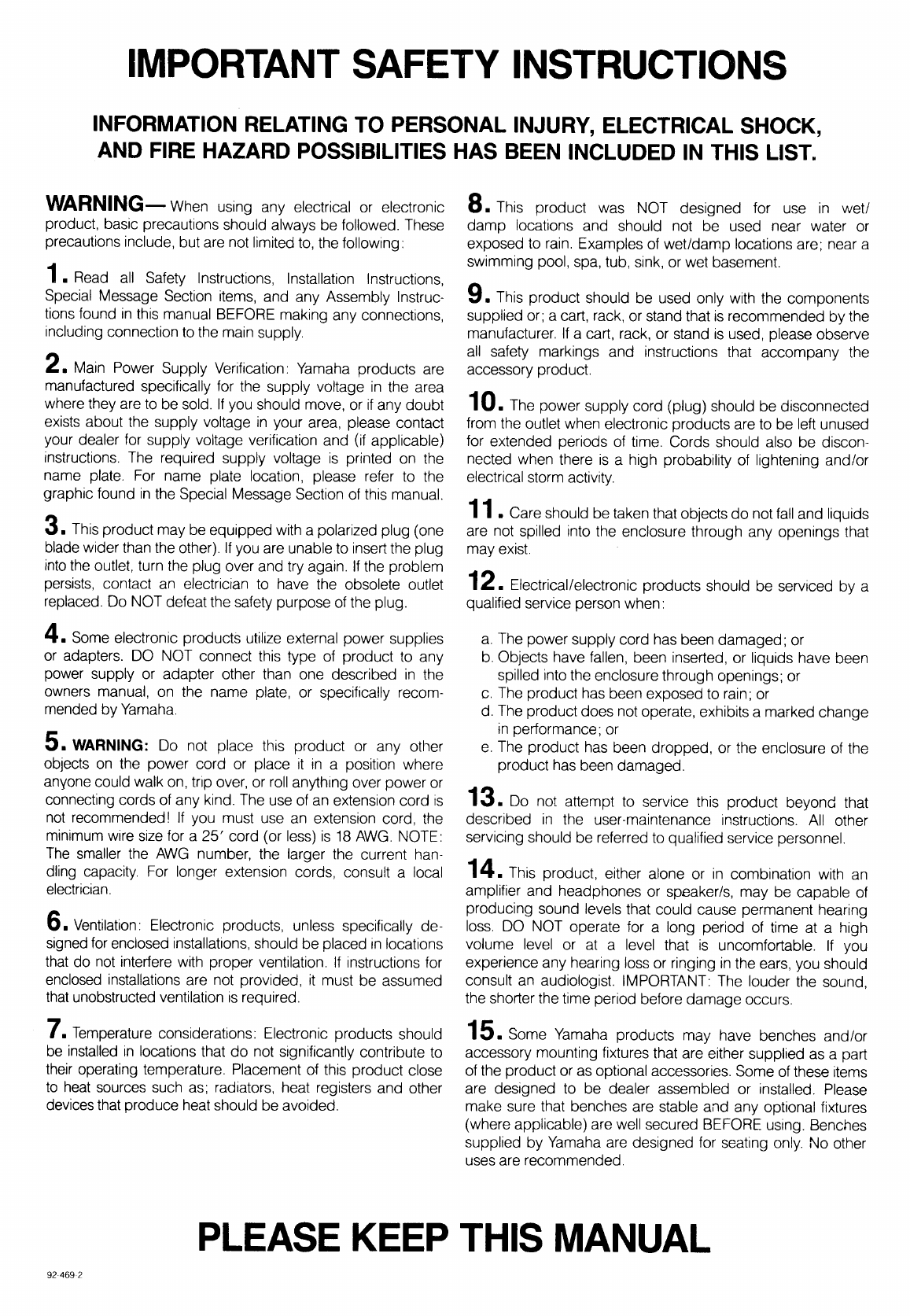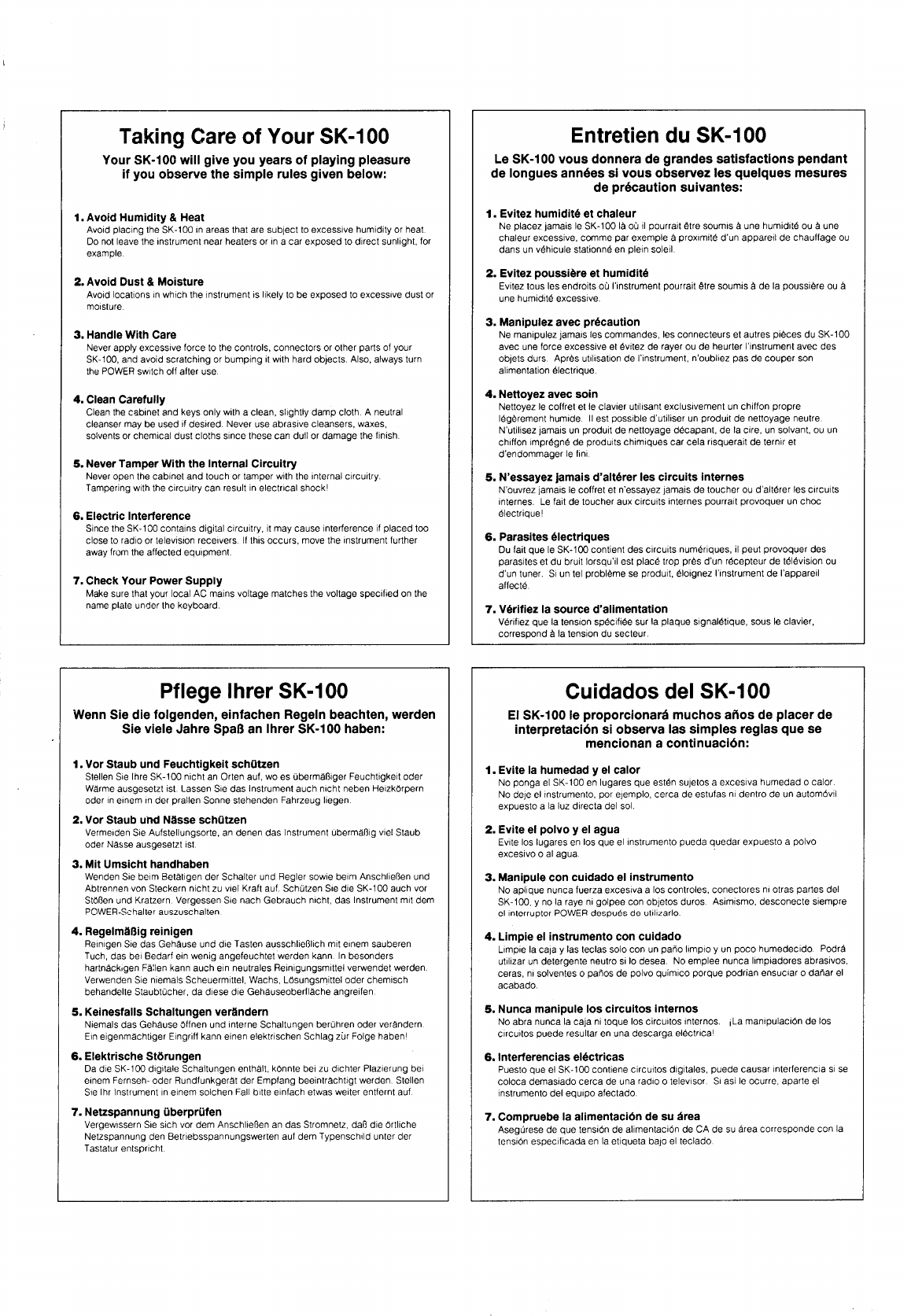 User Manual: Yamaha SK-100 Owner's Manual (Image)