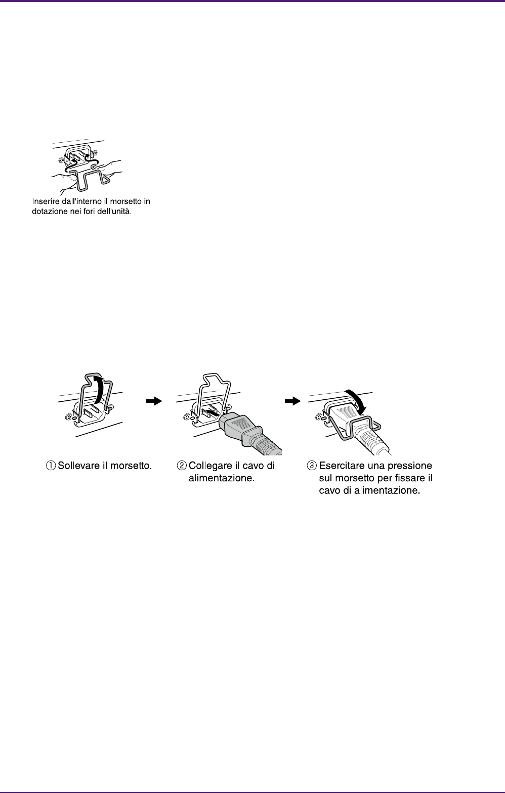 Utilizzare per collegare il cavo di alimentazione. Per dettagli sull’installazione, fare riferimento