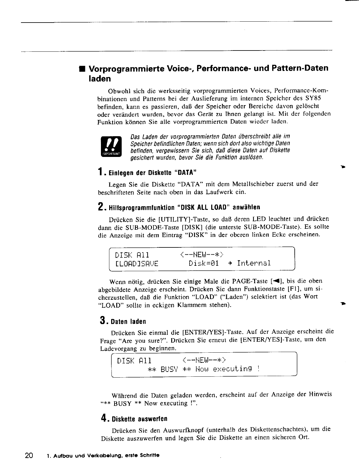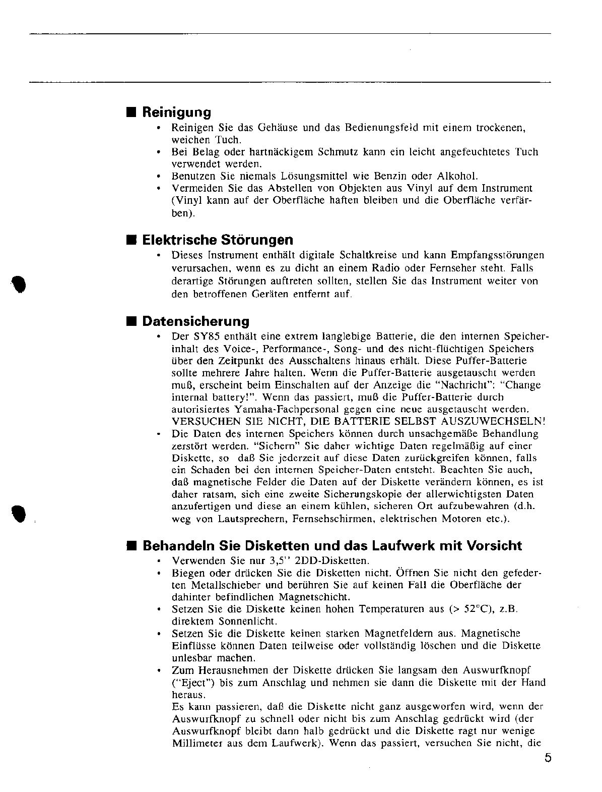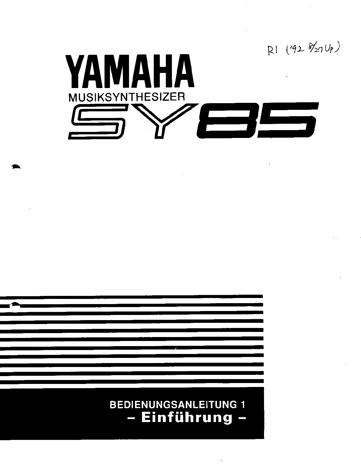 User Manual: Yamaha SY85 Owner's Manual (Feature Reference) (Image)