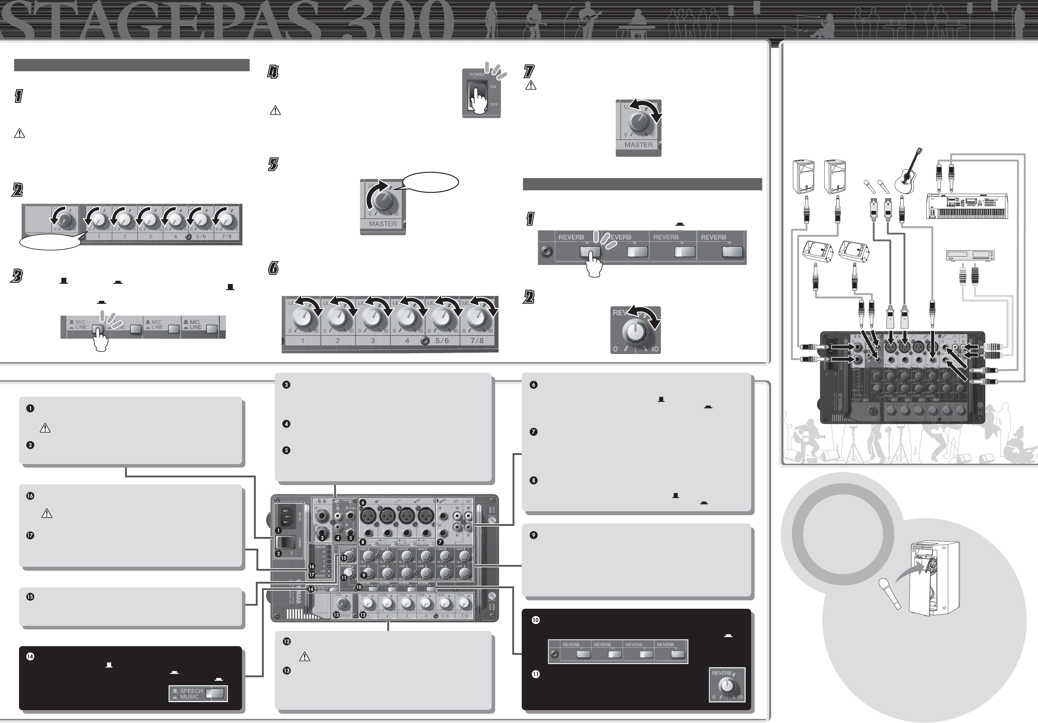 inputs and two stereo inputs, the STAGEPAS 300 can be connected to a wide range of instruments and devices.