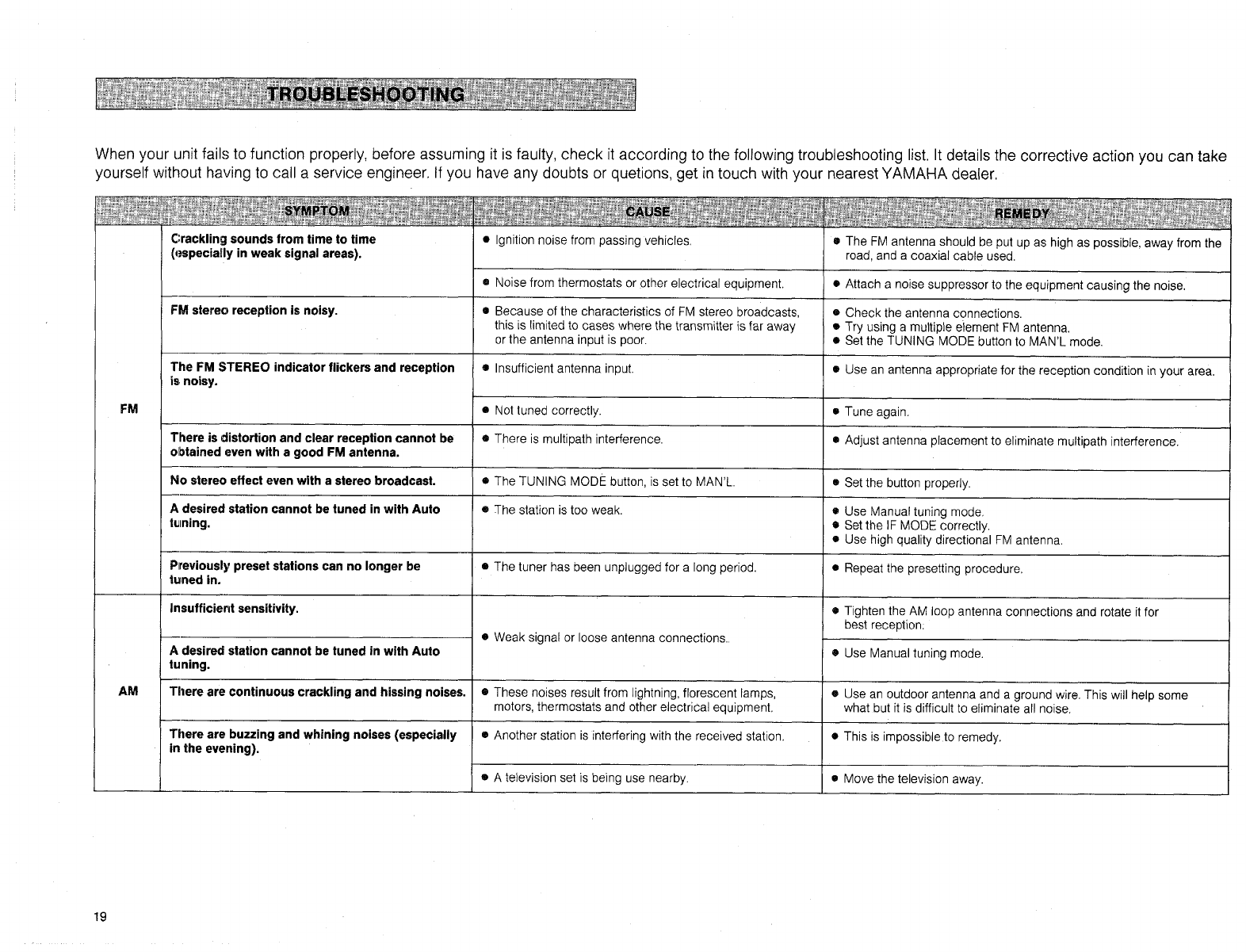 User Manual: Yamaha TX-2000 OWNER'S MANUAL
