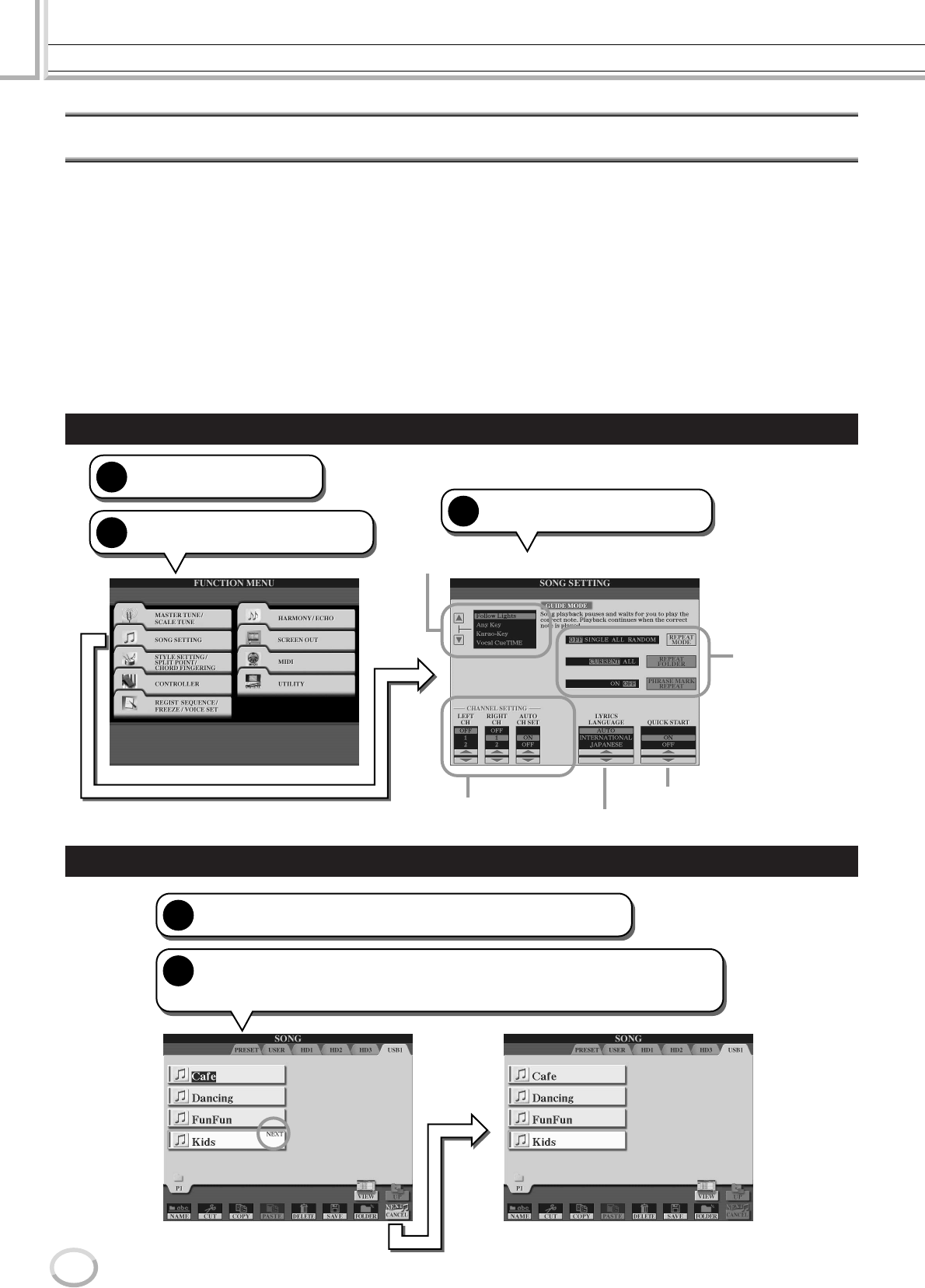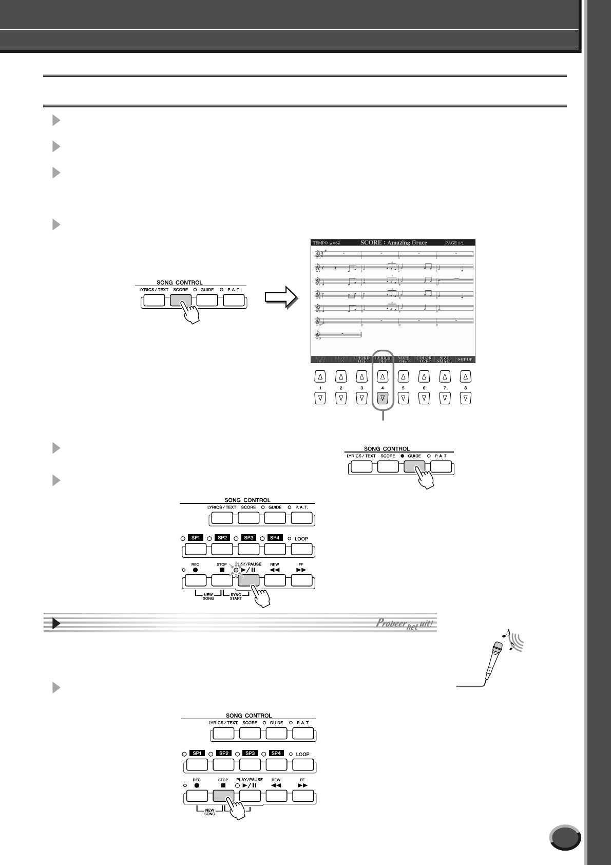 - Toetsenbord- en stemoefeningen met de functie Guide (gids) functie 49