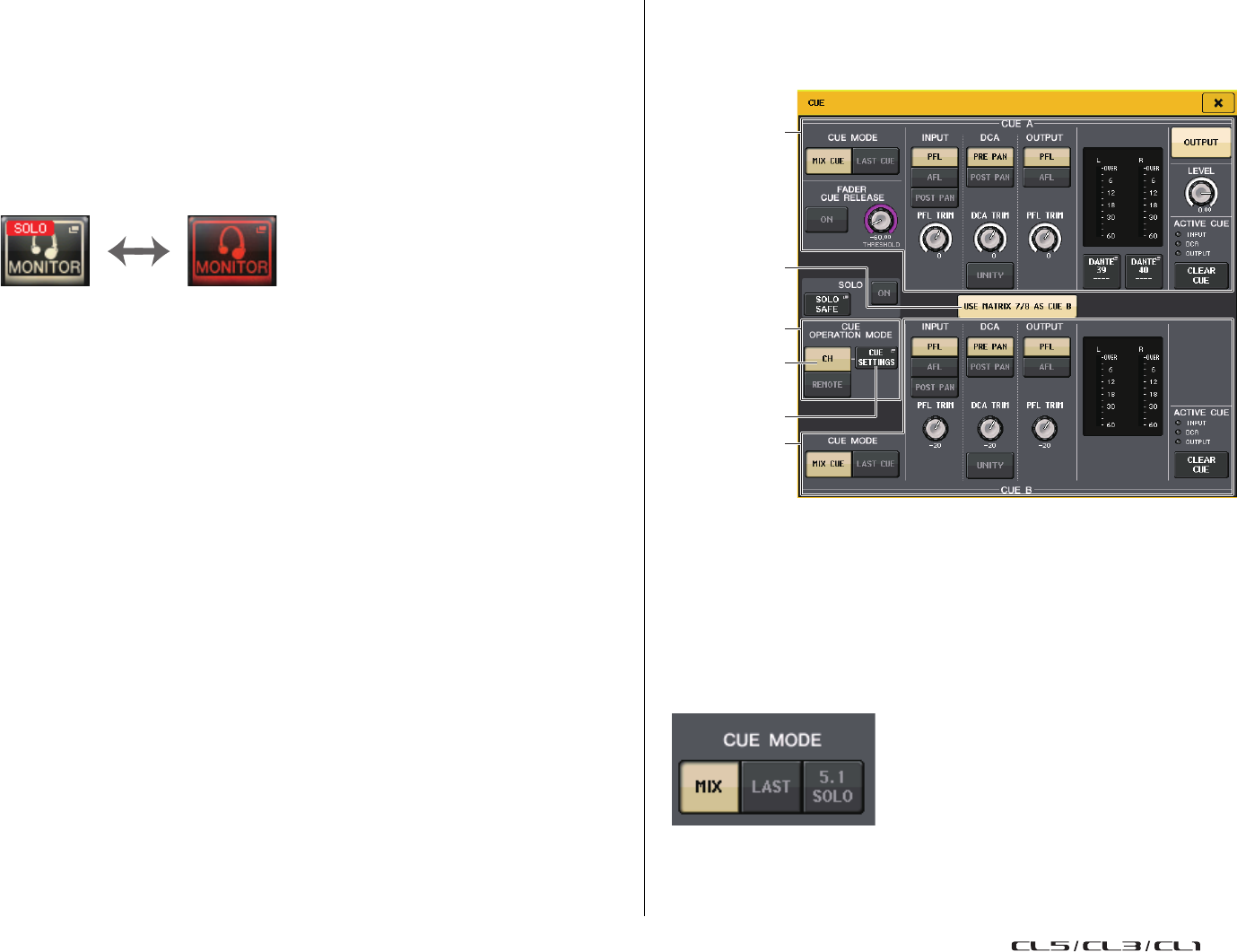 - Funzioni Monitor (Monitoraggio) e Cue (Segnale di attivazione)