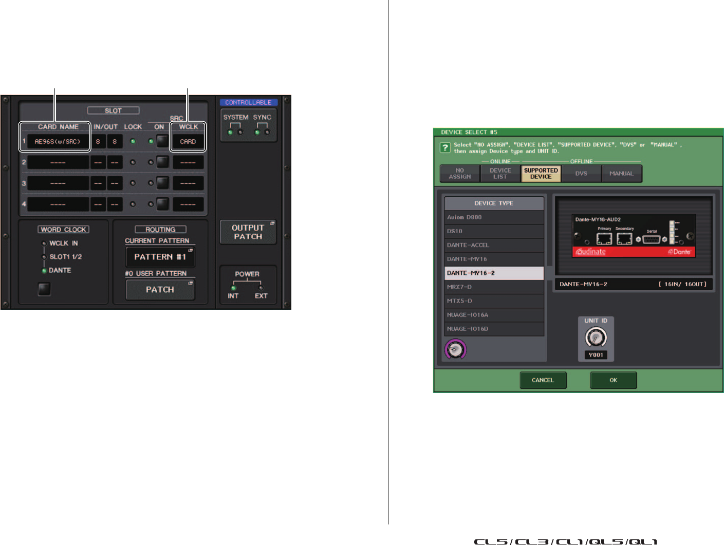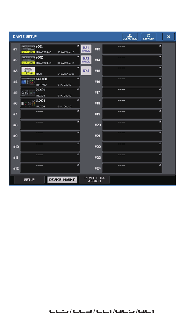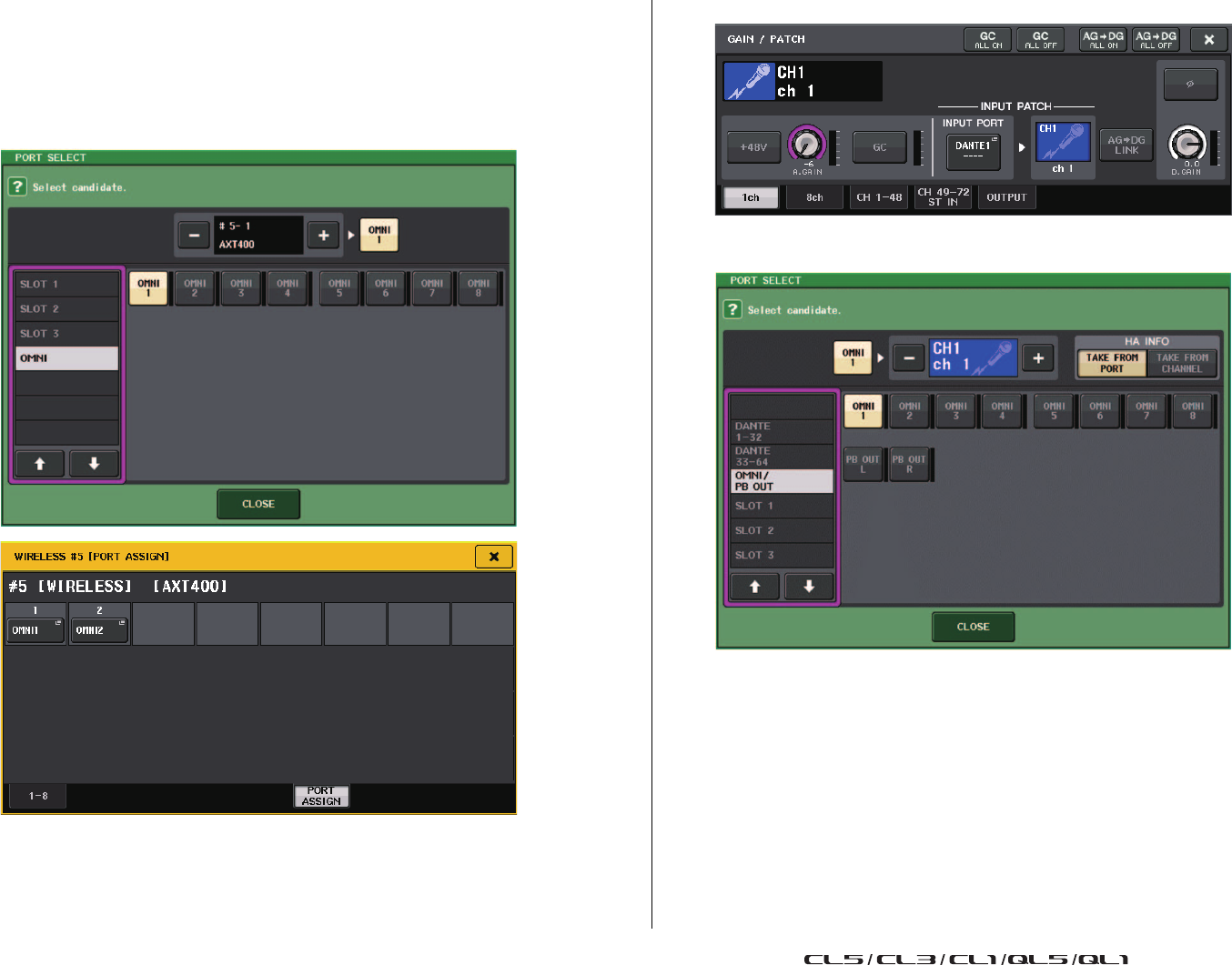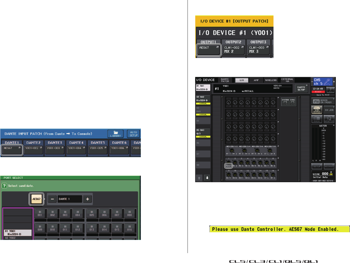 tienen salida Dante, consulte B“Fichas PORT ASSIGN (asignación de puertos)” en