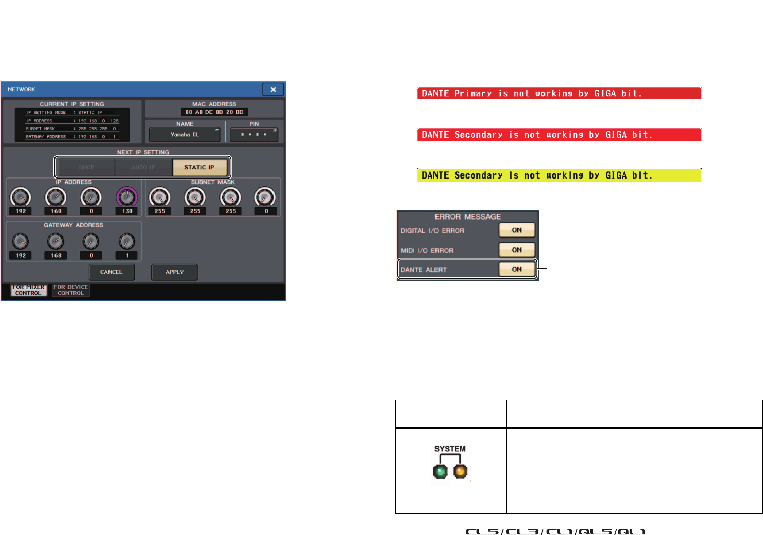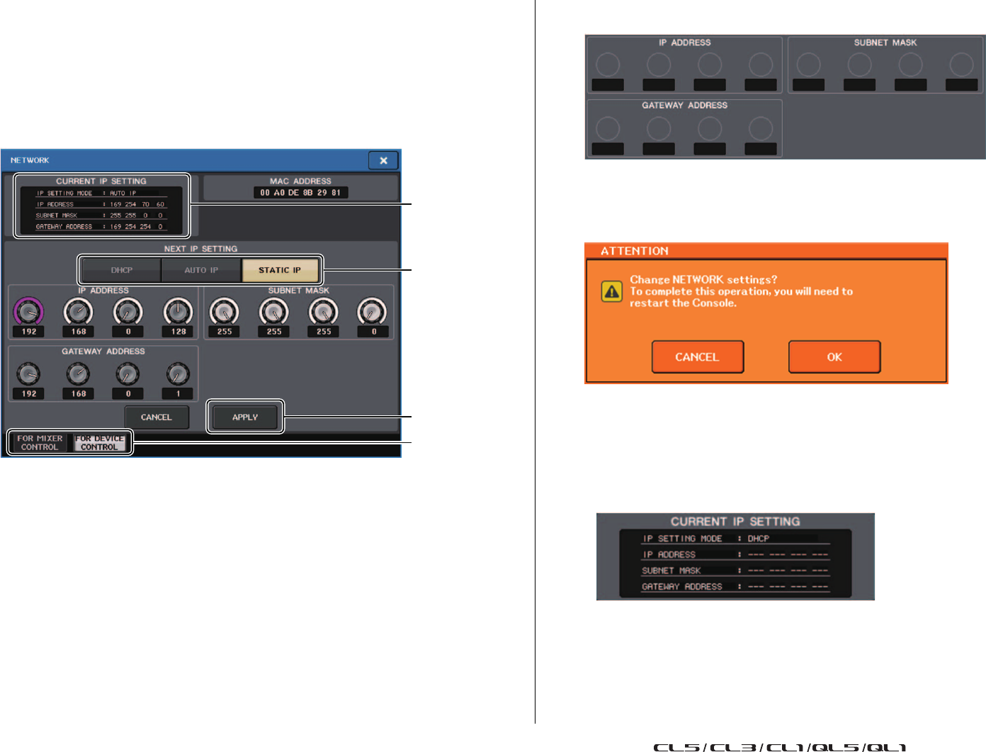 Si va a usar una dirección IP fija, establezca la consola CL/QL en STATIC IP. En este caso,
