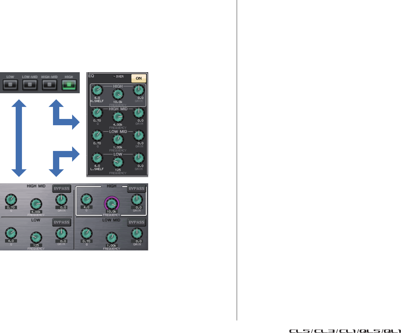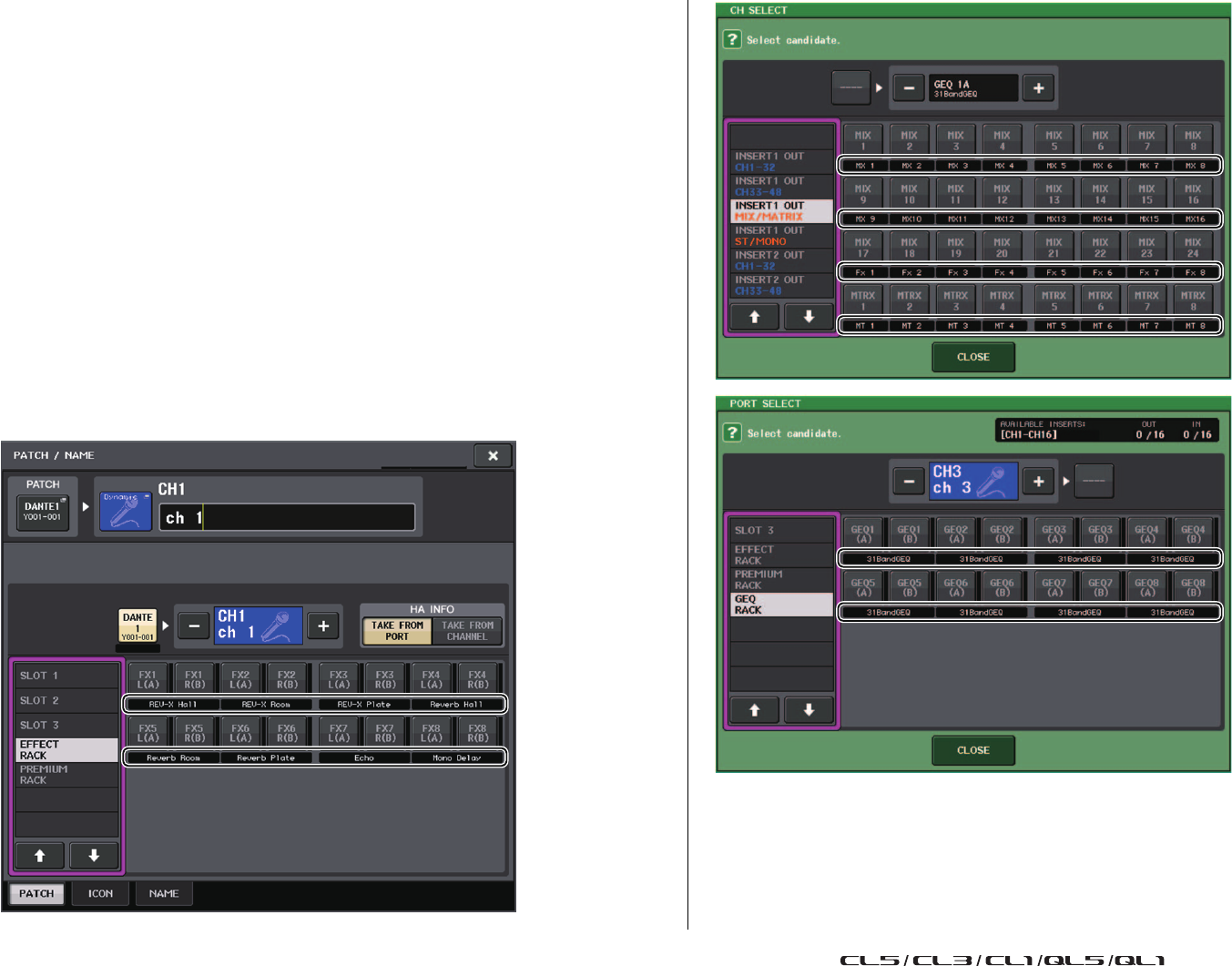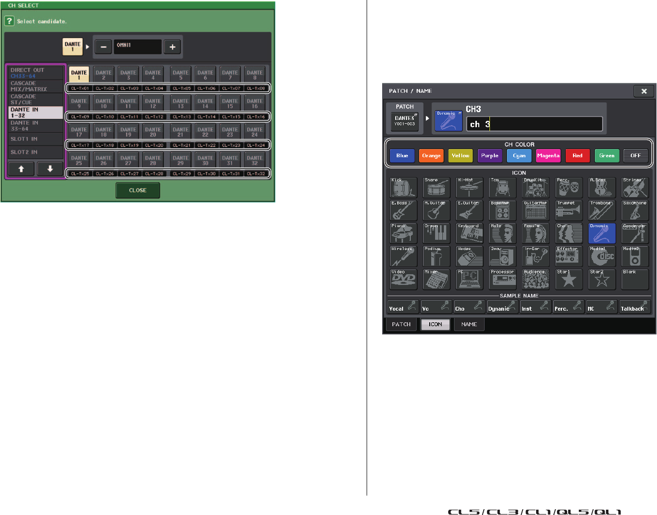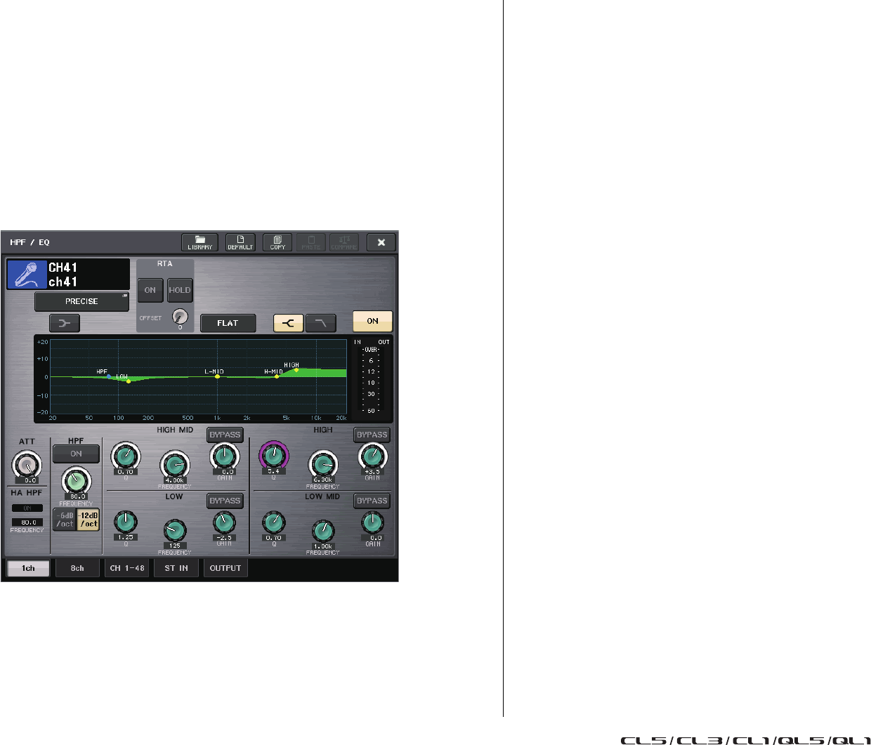 • En el caso de la CL3/CL1 o QL5/QL1, algunas pantallas no mostrarán canales y faders que no existan en esos modelos.