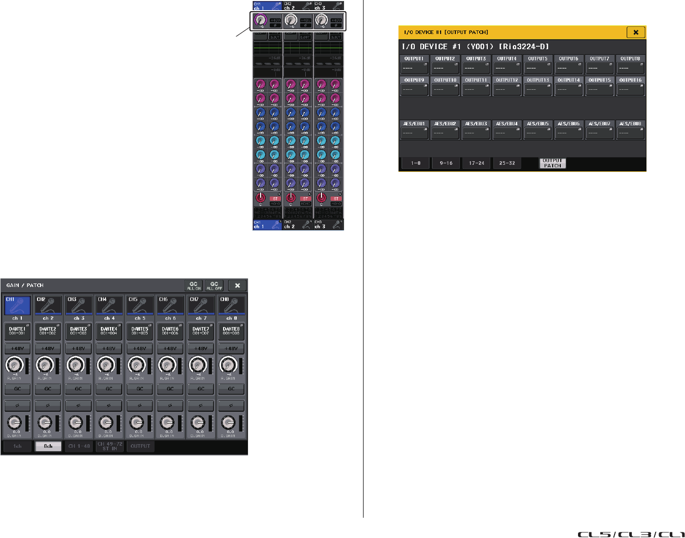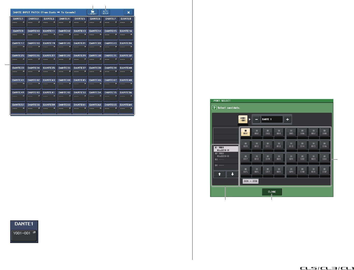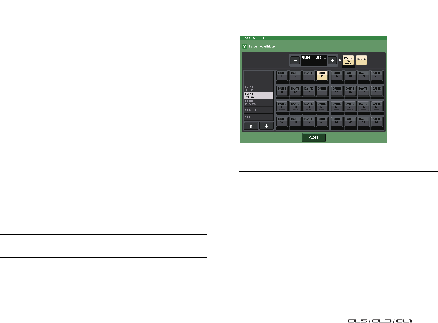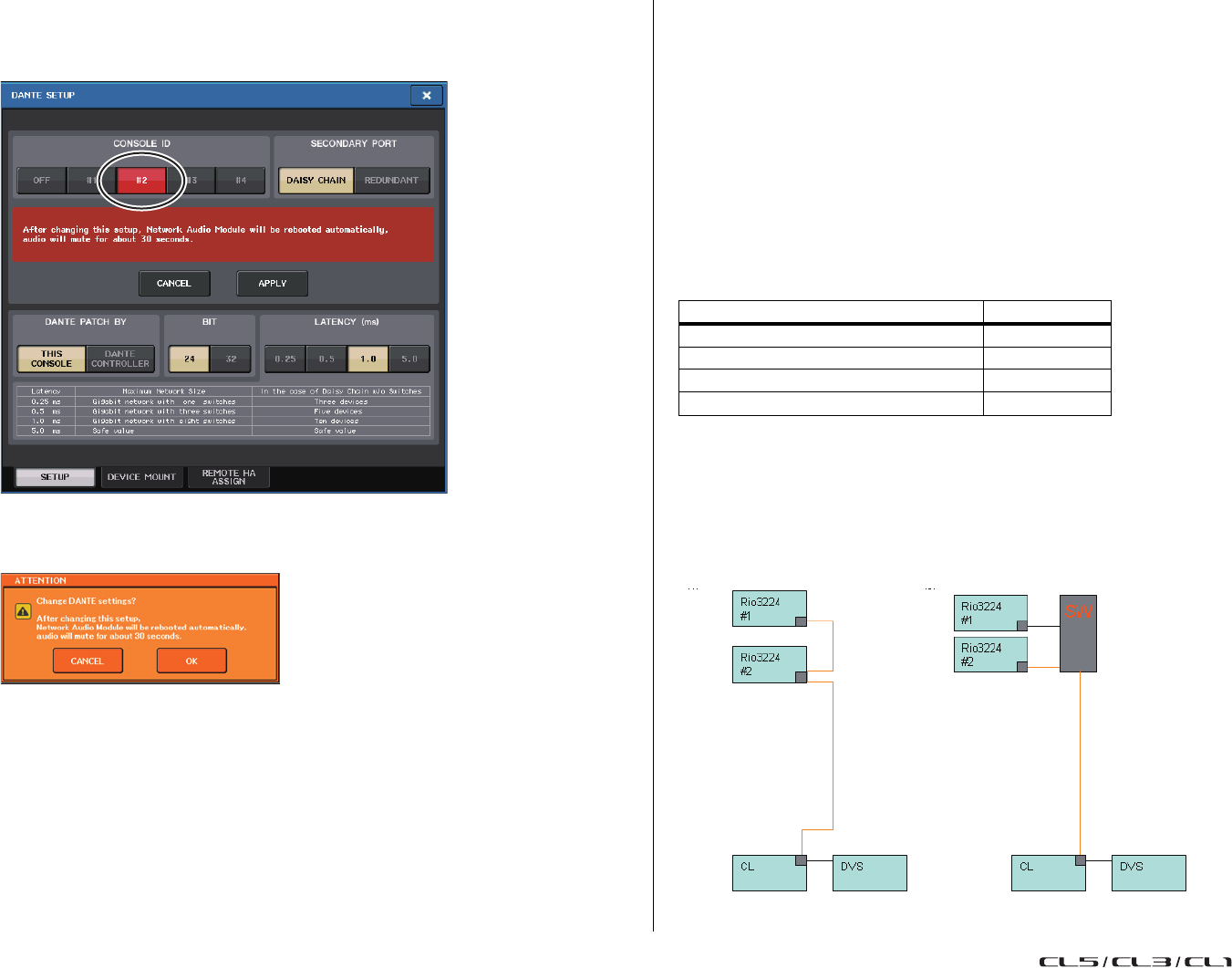 - Assignation interne de la console CL et assignation du réseau audio Dante